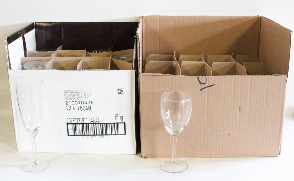 TWELVE WINE GLASSES/SIX CHAMPAGNE FLUTES