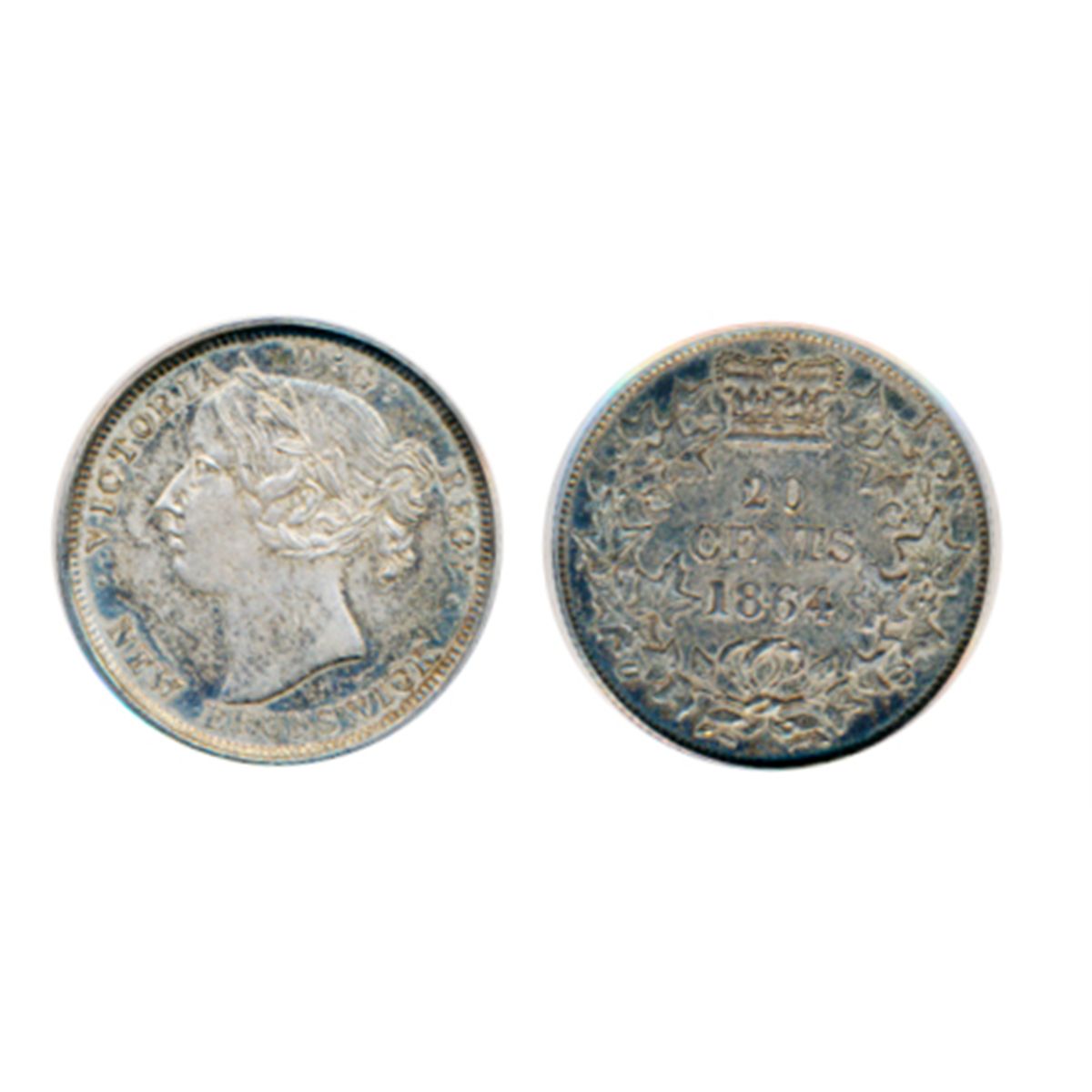 TWENTY CENTS. 1864. PCGS graded AU-58. A well struck piece with medium heavy toning.