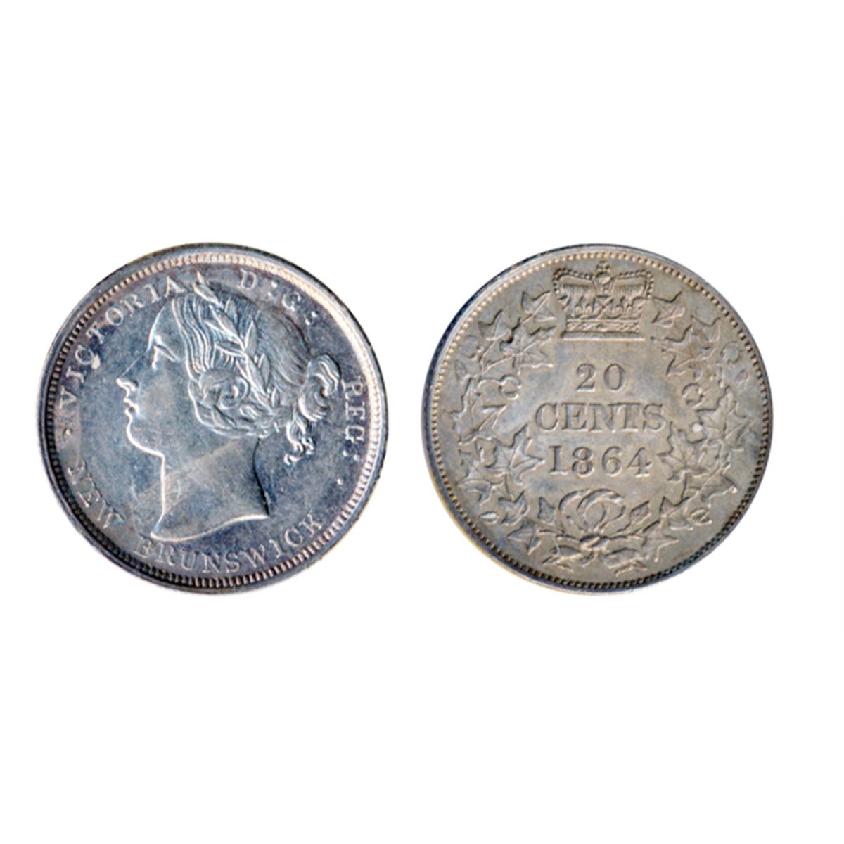 TWENTY CENTS. 1864. Recut ‘8’. ICCS Extra Fine-40. Medium heavy toning.