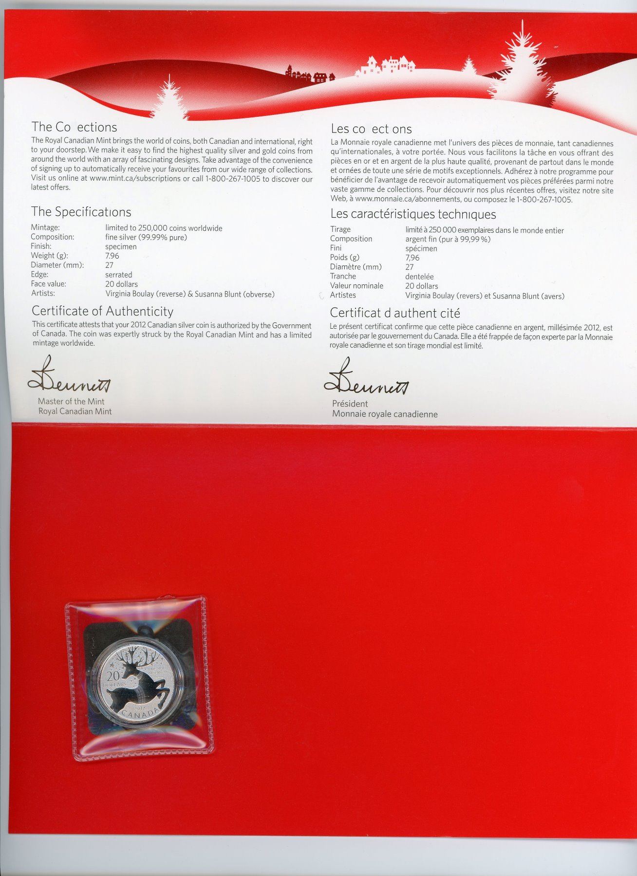 TWENTY DOLLAR SILVER COIN (CANADA) *CHRISTMAS* (CANADIAN MINT) *2012*