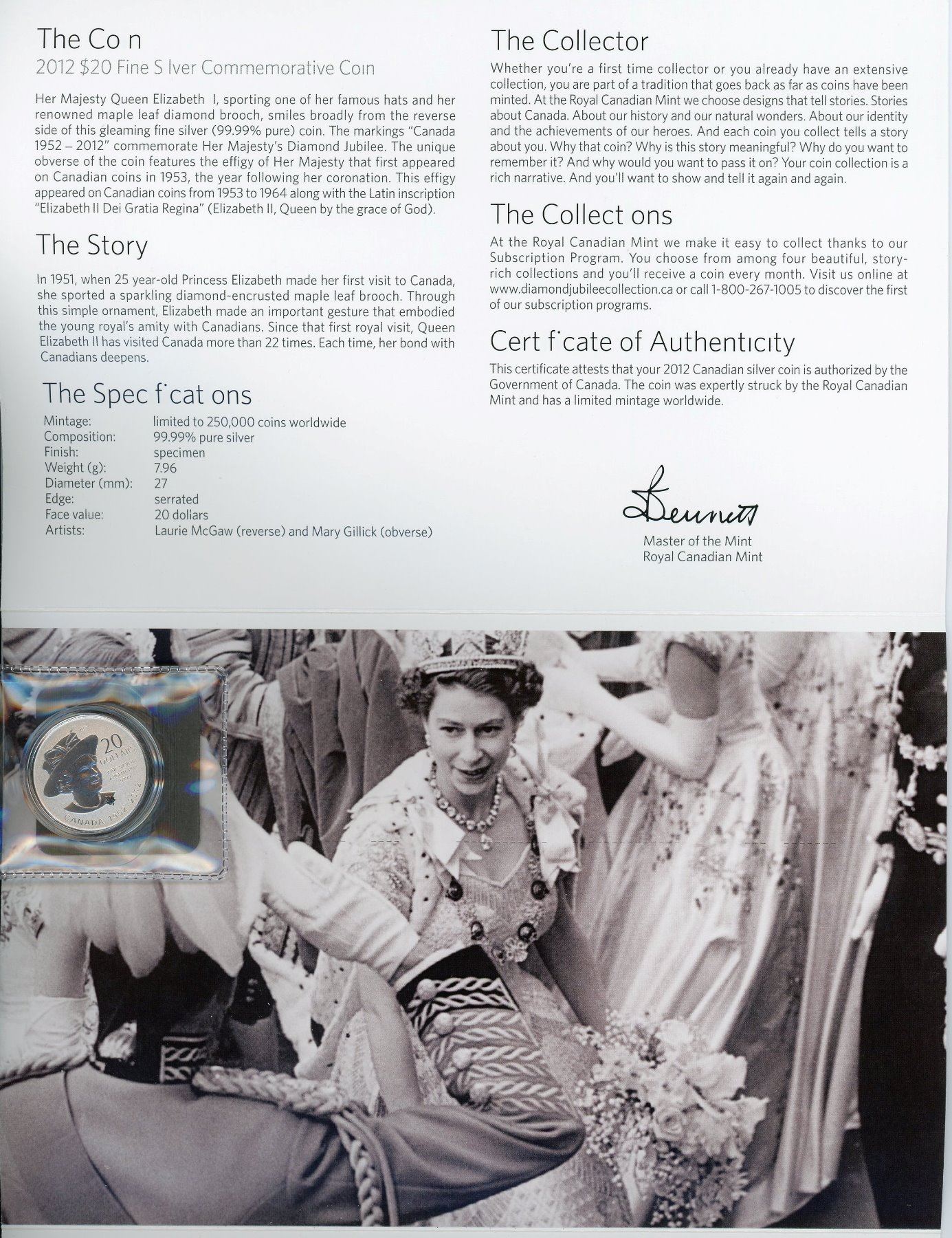 TWENTY DOLLAR SILVER COIN (CANADA) *QUEENS 60TH ANNIVERSARY* (CANADIAN MINT) *2012*