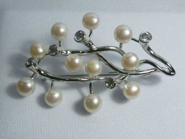 TWIG WHITE PEARL CZ BROOCH AUTHENTIC PHILIPPINE PEARL M **|**|** TWIG WHITE PEARL CZ BROOCH AUTHENTIC PHILIPPINE PEARL METAL SILVER ; MSRP: $150