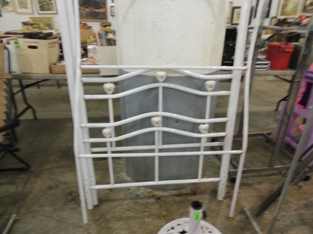 STANDARD SIDE RAILS NOT INCLUDED ,TWIN SIZE FOUR POSTER BEDFRAME WITH CANOPY AS SHOWN SEE PHOTO FOR MORE DETAILS.