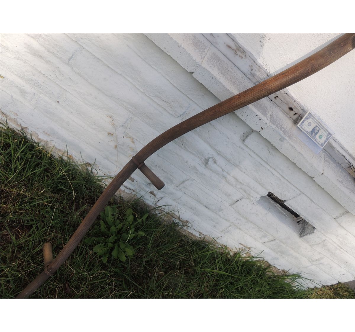 This is a real antique Scythe. Made of solid wood and steel. It's last use was in the barn at the end of Twister, but I was told it had use in one of the early Children of the Corn films as well.