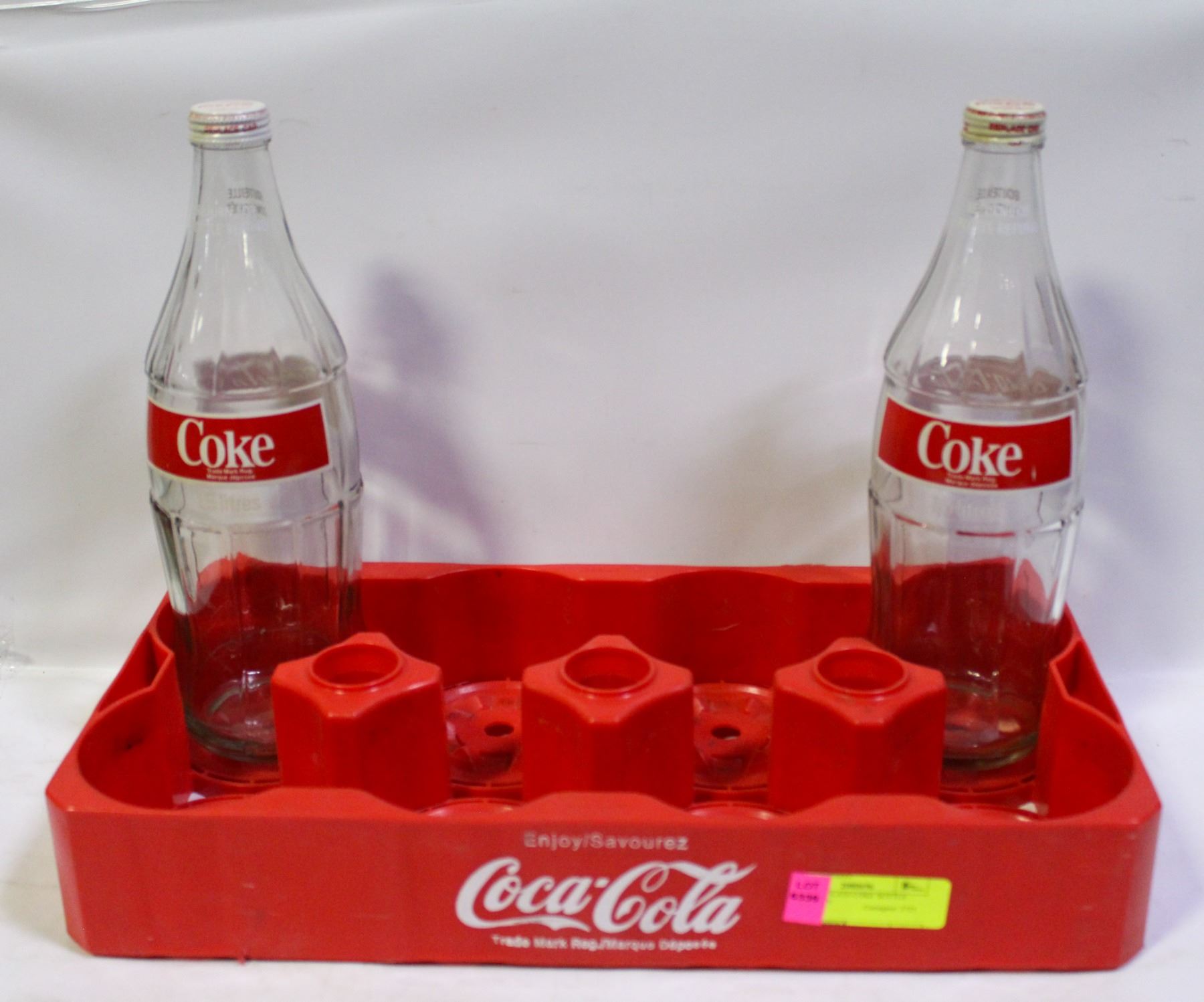 TWO 1.5L GLASS COKE BOTTLE WITH TRAY