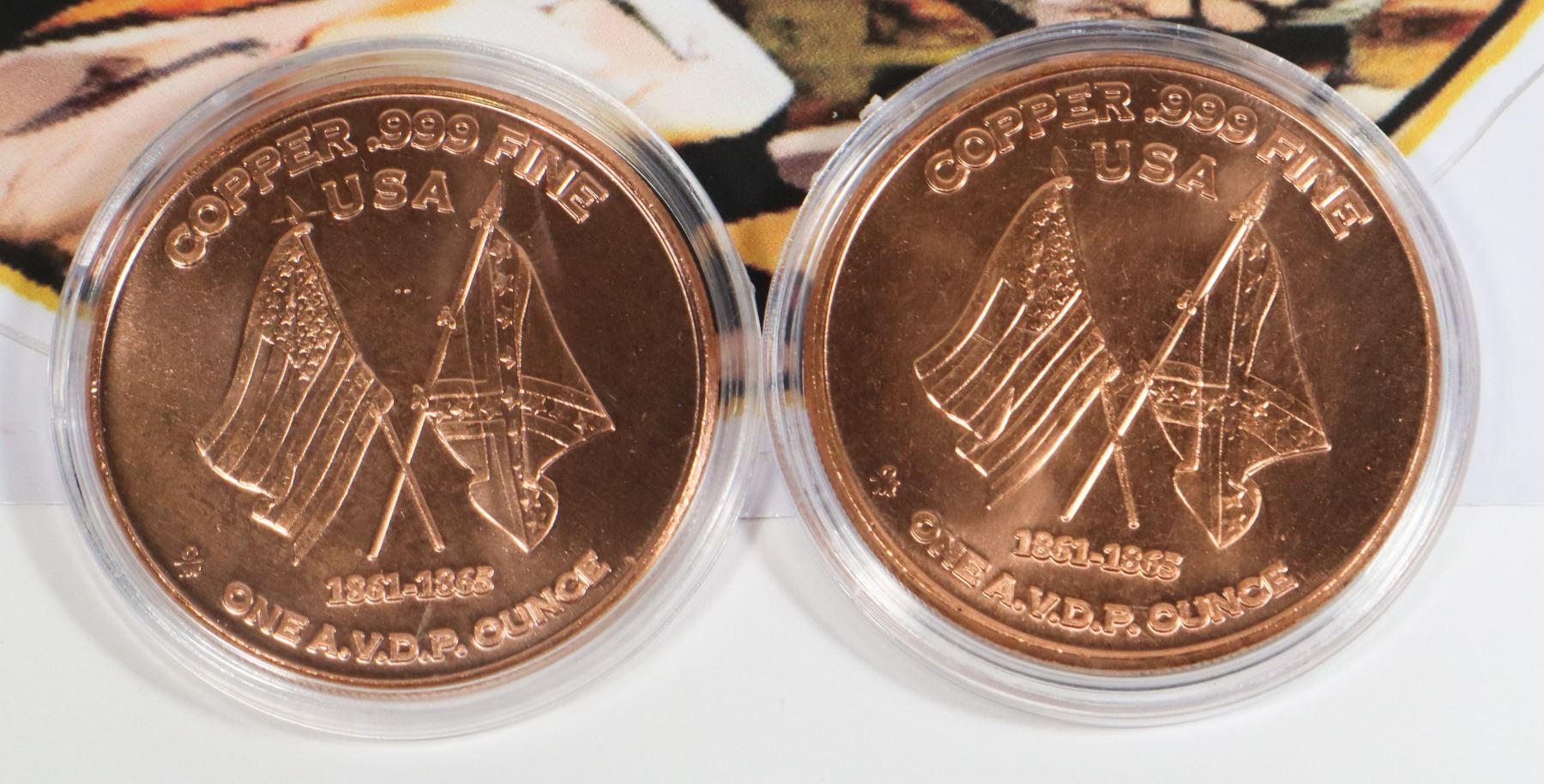 TWO 1-OZ .999 PURE COPPER ROUNDS IN CAPSULES,