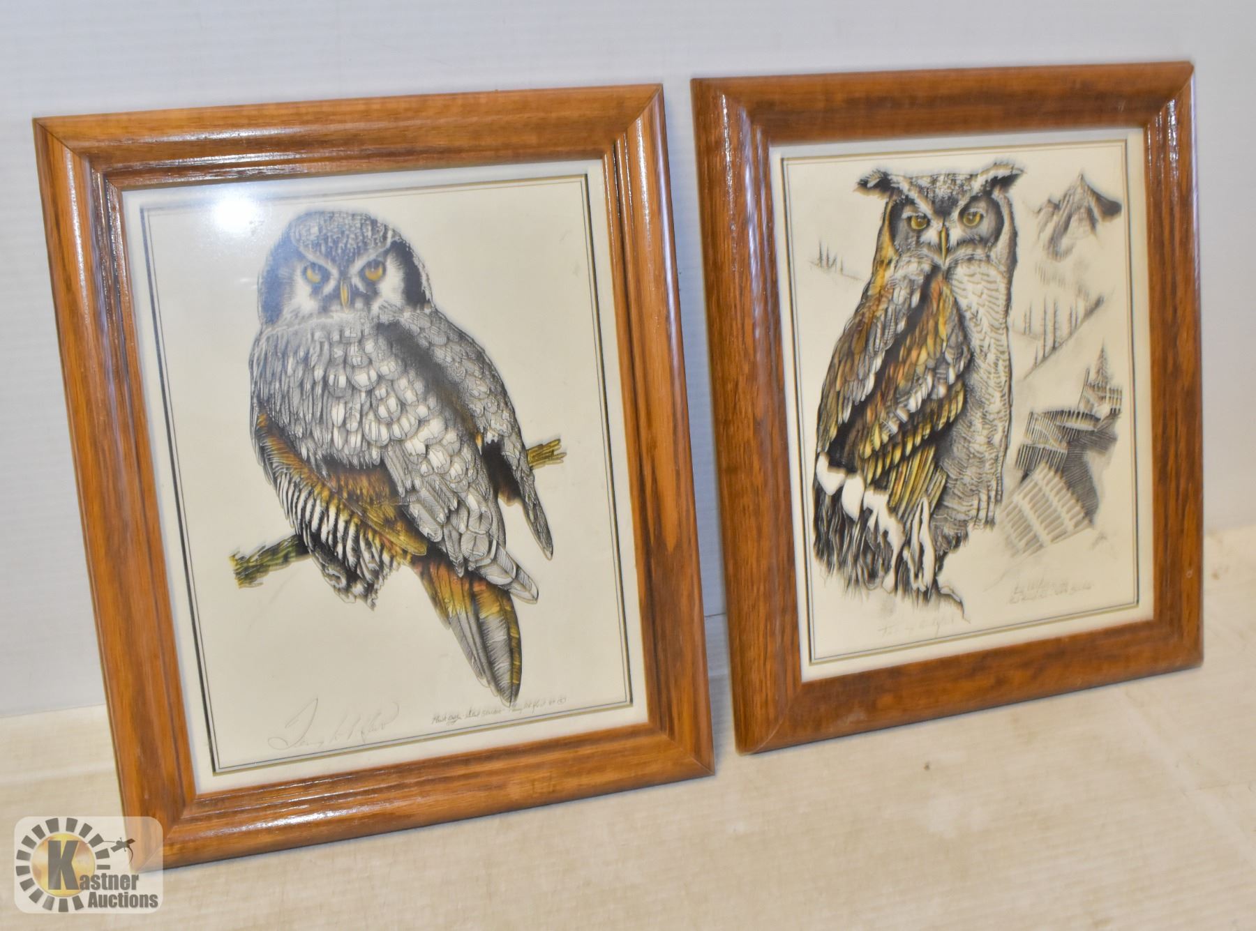 TWO 10X12 INCH SIGNED GREAT HORNED OWL