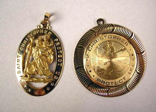 TWO 14K YELLOW GOLD ST. CHRISTOPHER'S MEDAL PENDANTS One circle and one oval medal, apx. 3 dwt.