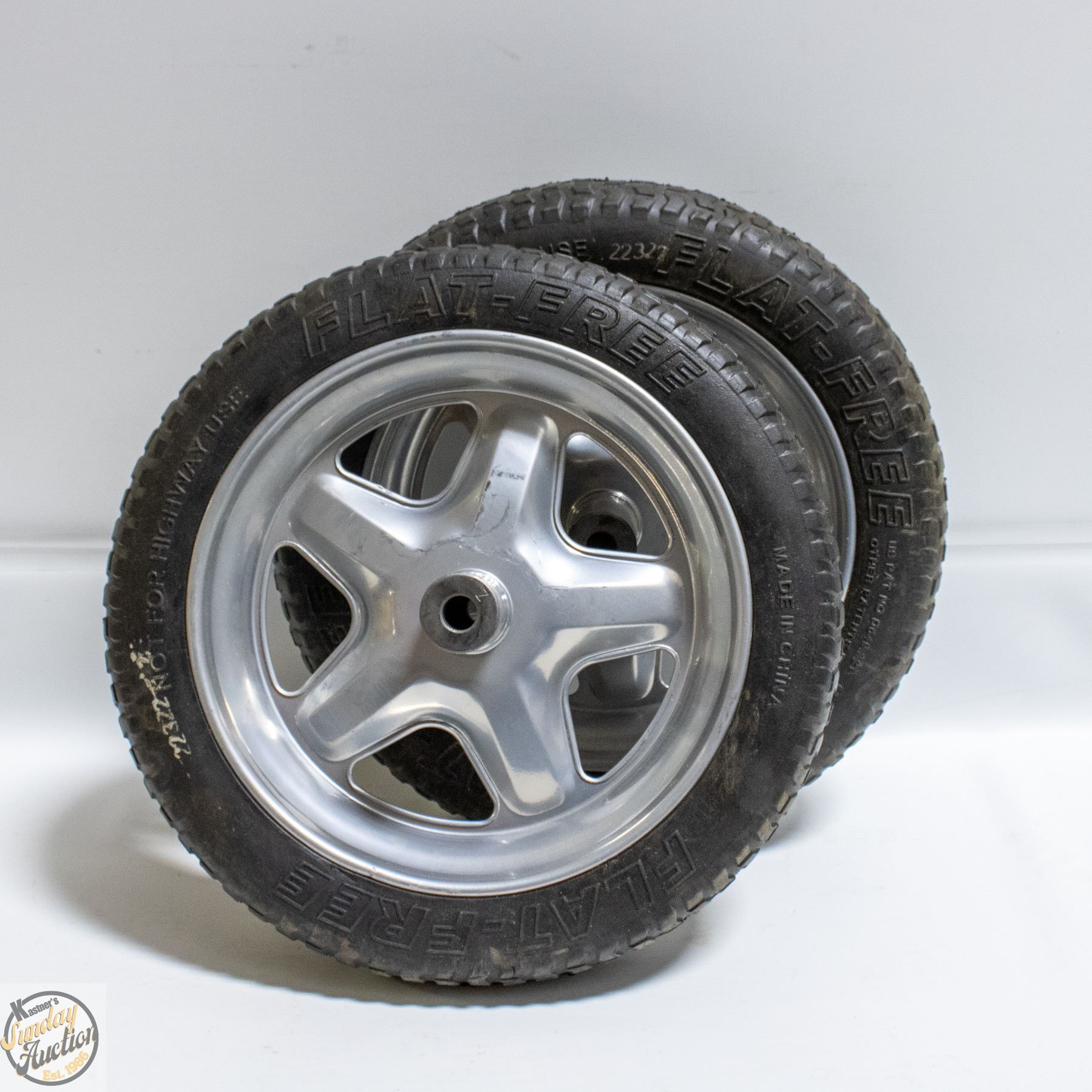 TWO 15" FLAT-FREE TIRES ON RIMS
