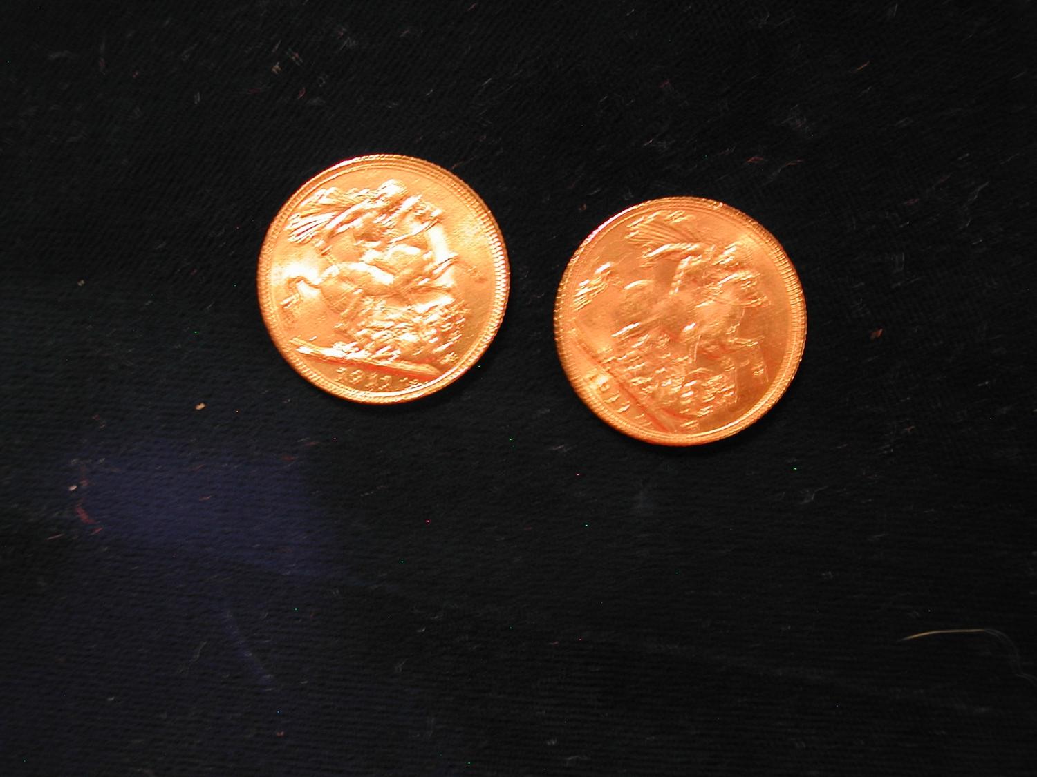 TWO 1911 BRITISH EDWARD VII SOVEREIGN X'S $