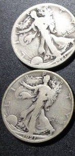 TWO 1921-S STANDING LIBERTY HALF DOLLARS