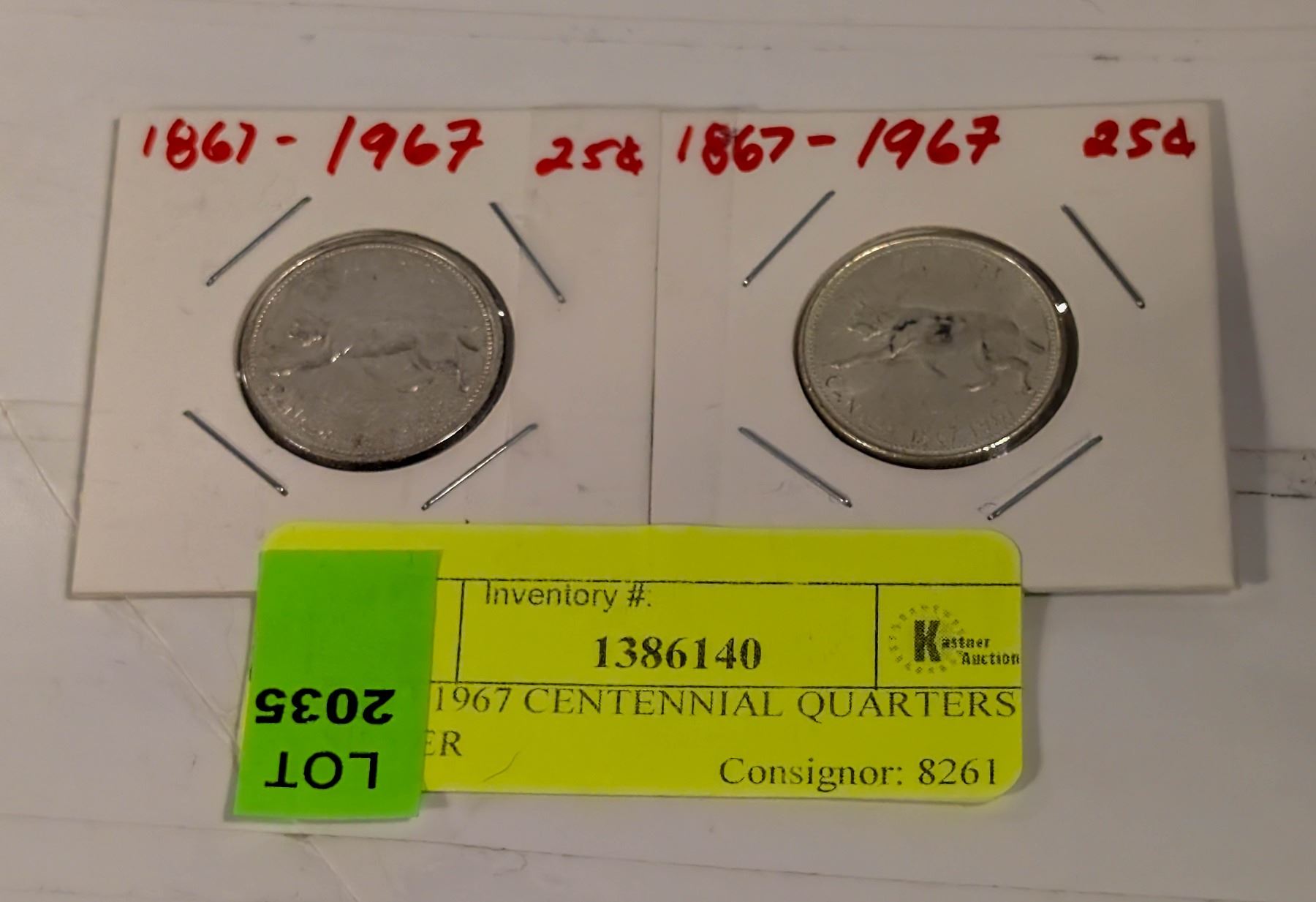 TWO 1967 CENTENNIAL QUARTERS SILVER