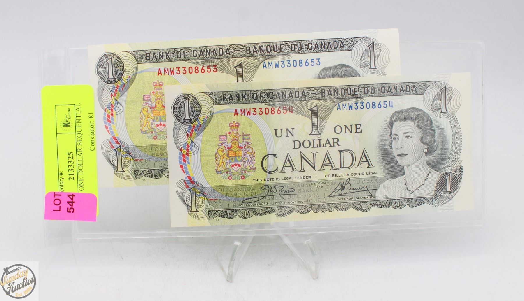 TWO 1973 ONE DOLLAR SEQUENTIAL BILLS