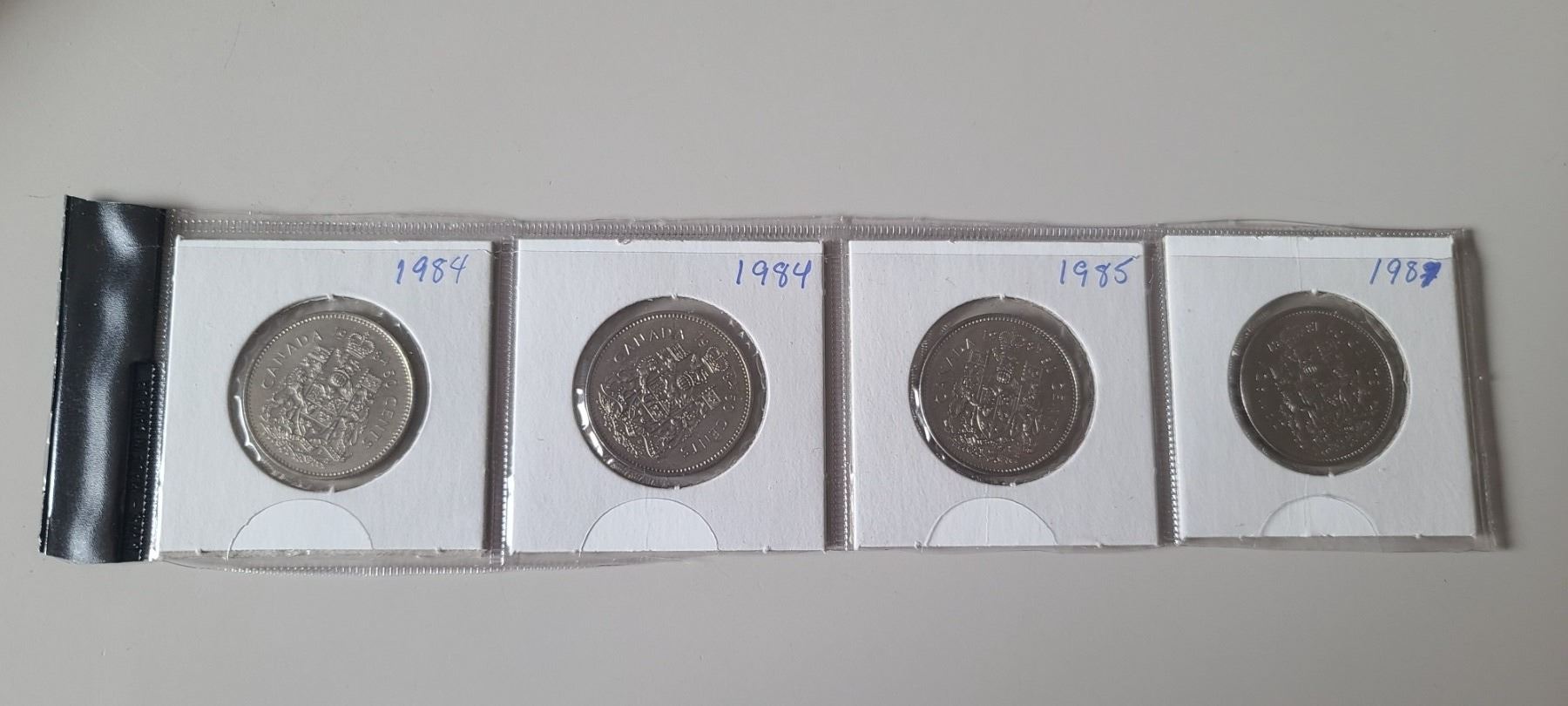 TWO 1984 CANADIAN 50c PIECE, ONE 1895 50c PIECE, AND ONE 1987 50c PIECE