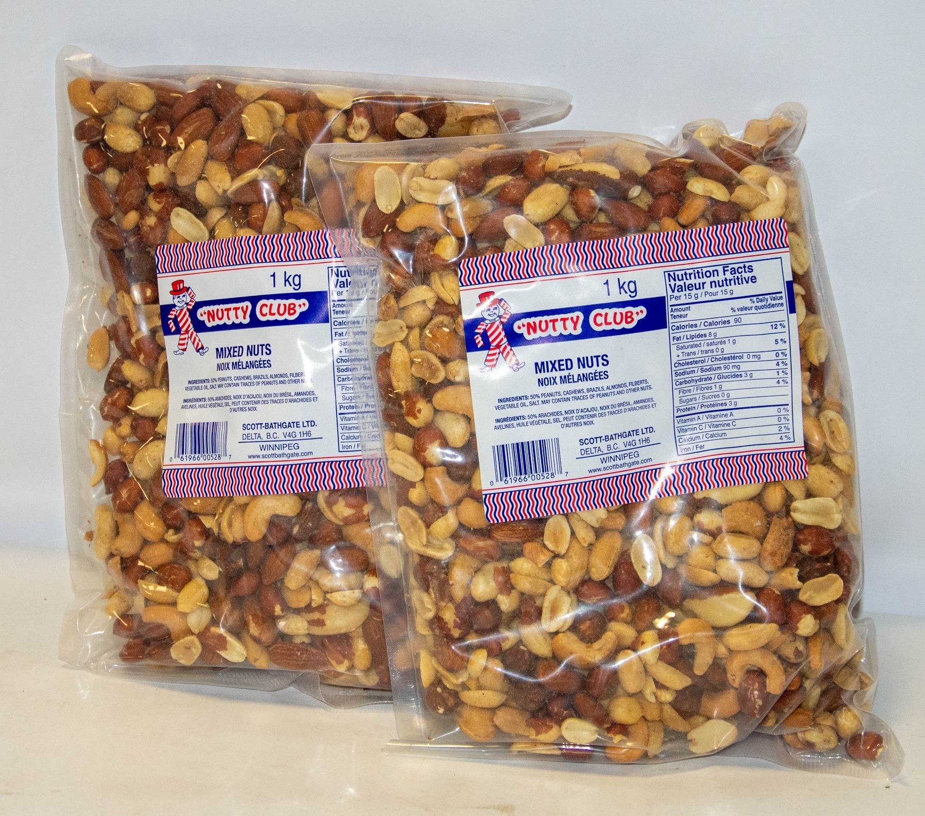 TWO 1KG BAGS NUTTY CLUB MIXED NUTS