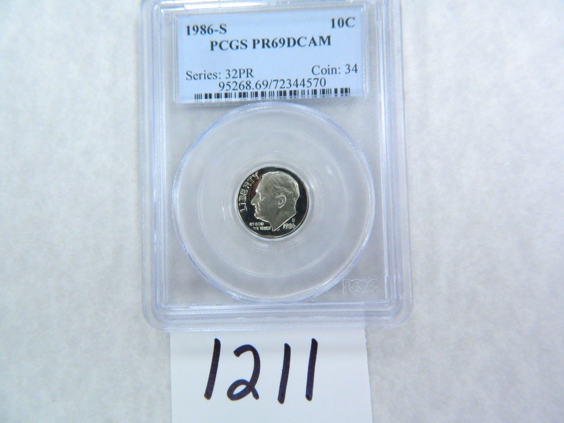TWO (2) 1986-S Roosevelt Dime PCGS Graded PR69 DC