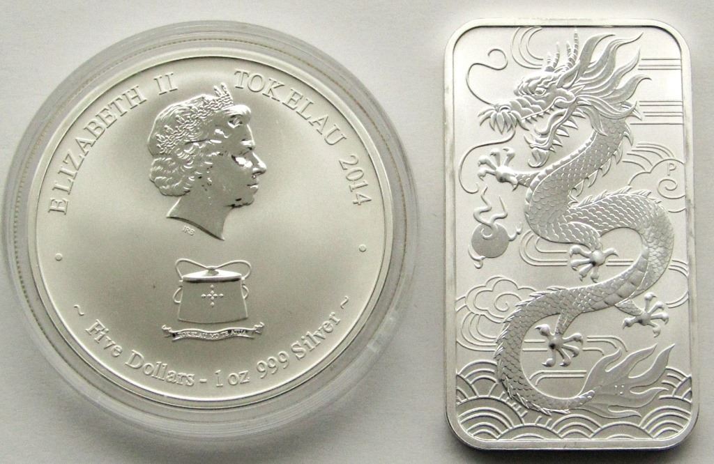 2014 TOKELAU 5 DOLLARS & 2018 AUSTRALIAN PERTH RECTANGLE DRAGON BAR