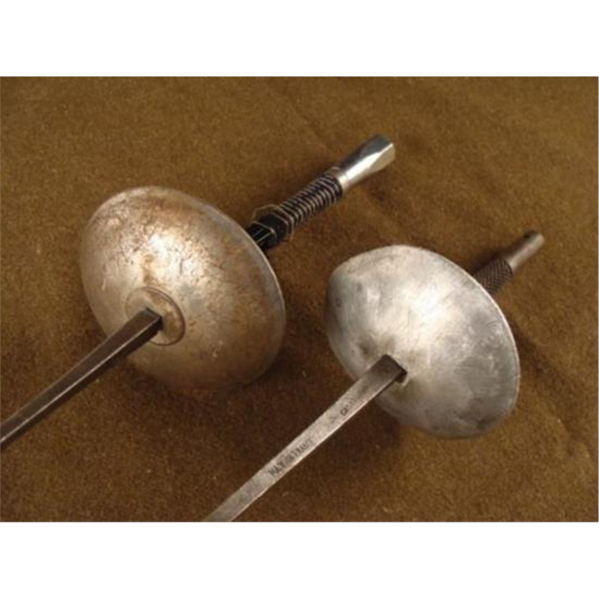 TWO (2) FRENCH MADE VINTAGE FENCING FOILS/SWORDS TWO (2) FRENCH MADE VINTAGE FENCING FOILS/SWORDS TWO OLD CASTELLO FENCING FOILS-MADE IN FRANCE-BLUNTED-35~ BLADES, PADDED HAND GUARDS MWF83