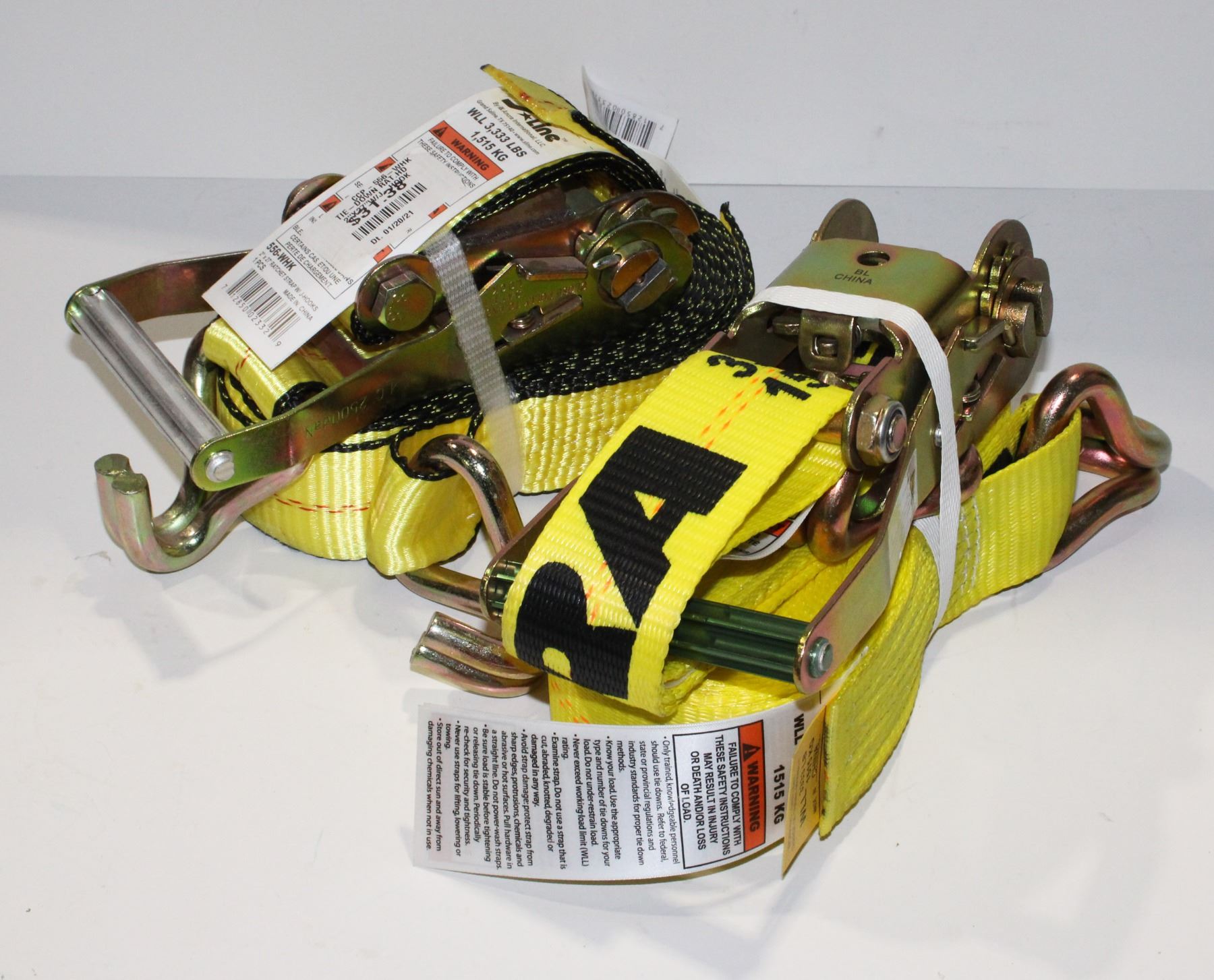TWO 2" X 27' RATCHET STRAPS WITH J HOOKS