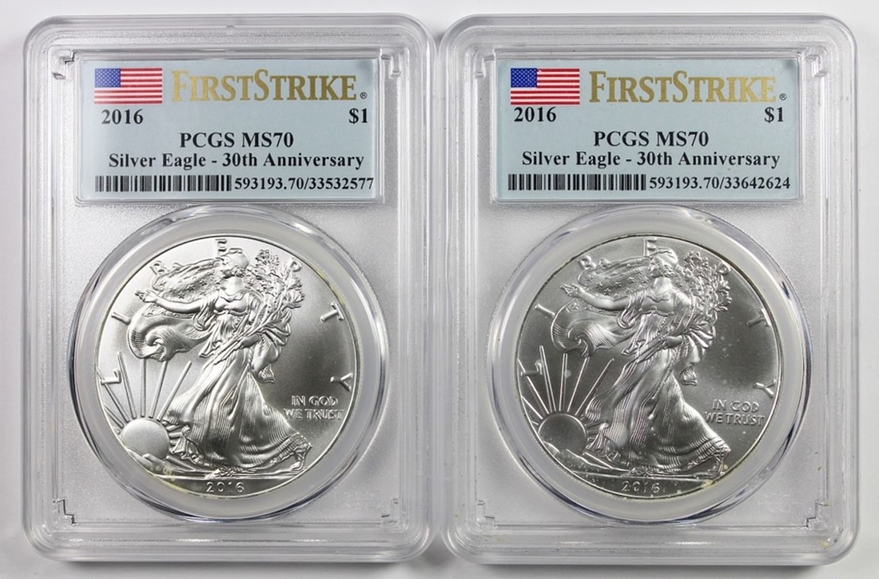 BOTH PCGS GRADED MS70. ESTIMATE: $150-$200