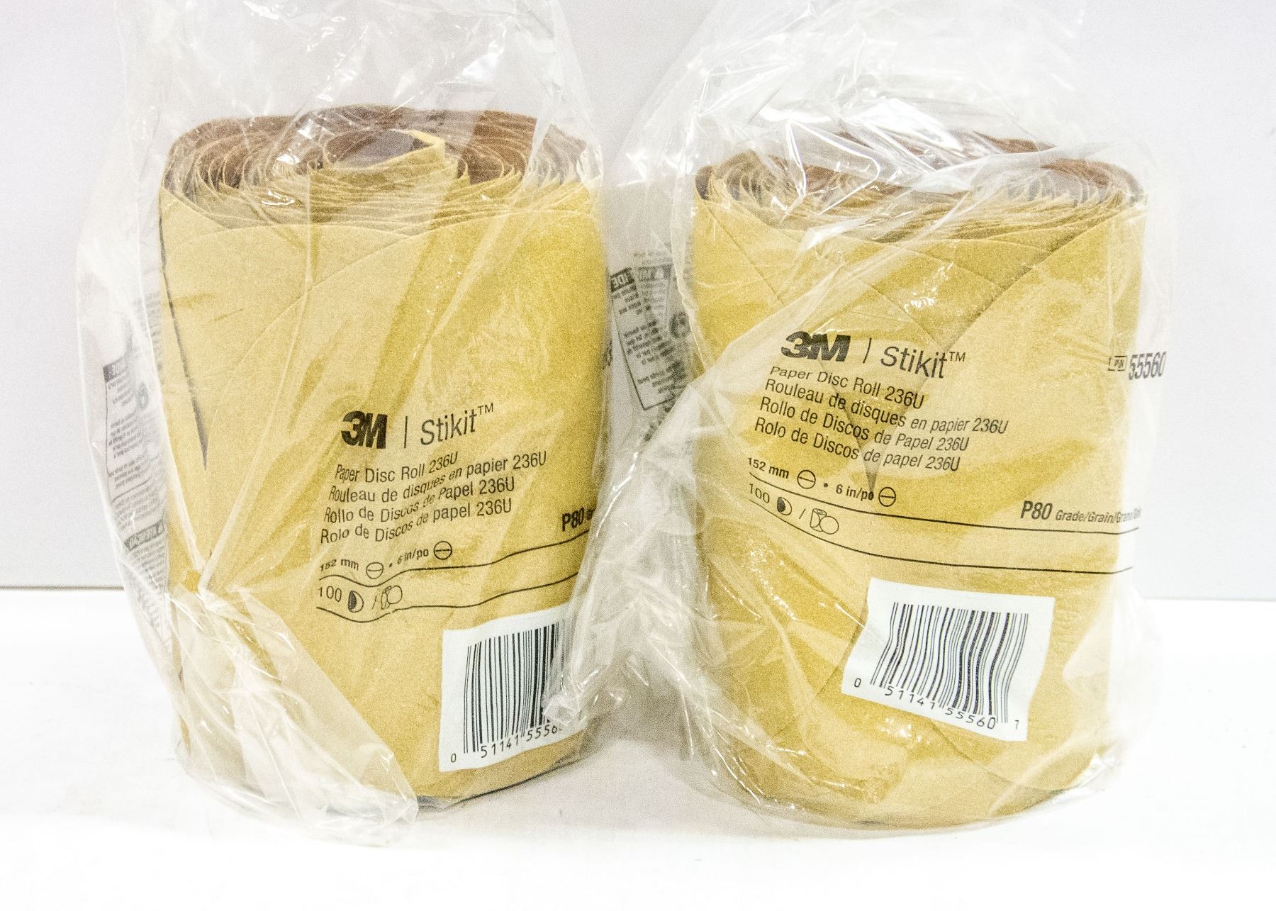TWO 3M STIKIT PAPER DISC ROLL 236U P80 GRADE