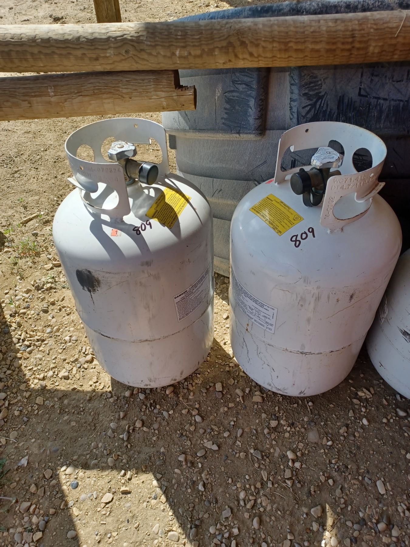 TWO 40LBS PROPANE TANKS - ONE FULL - ONE EMPTY