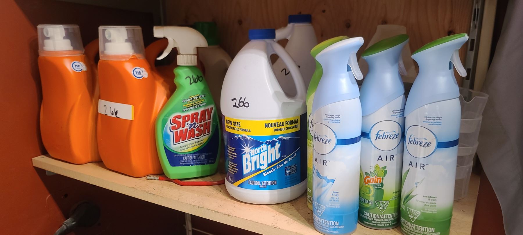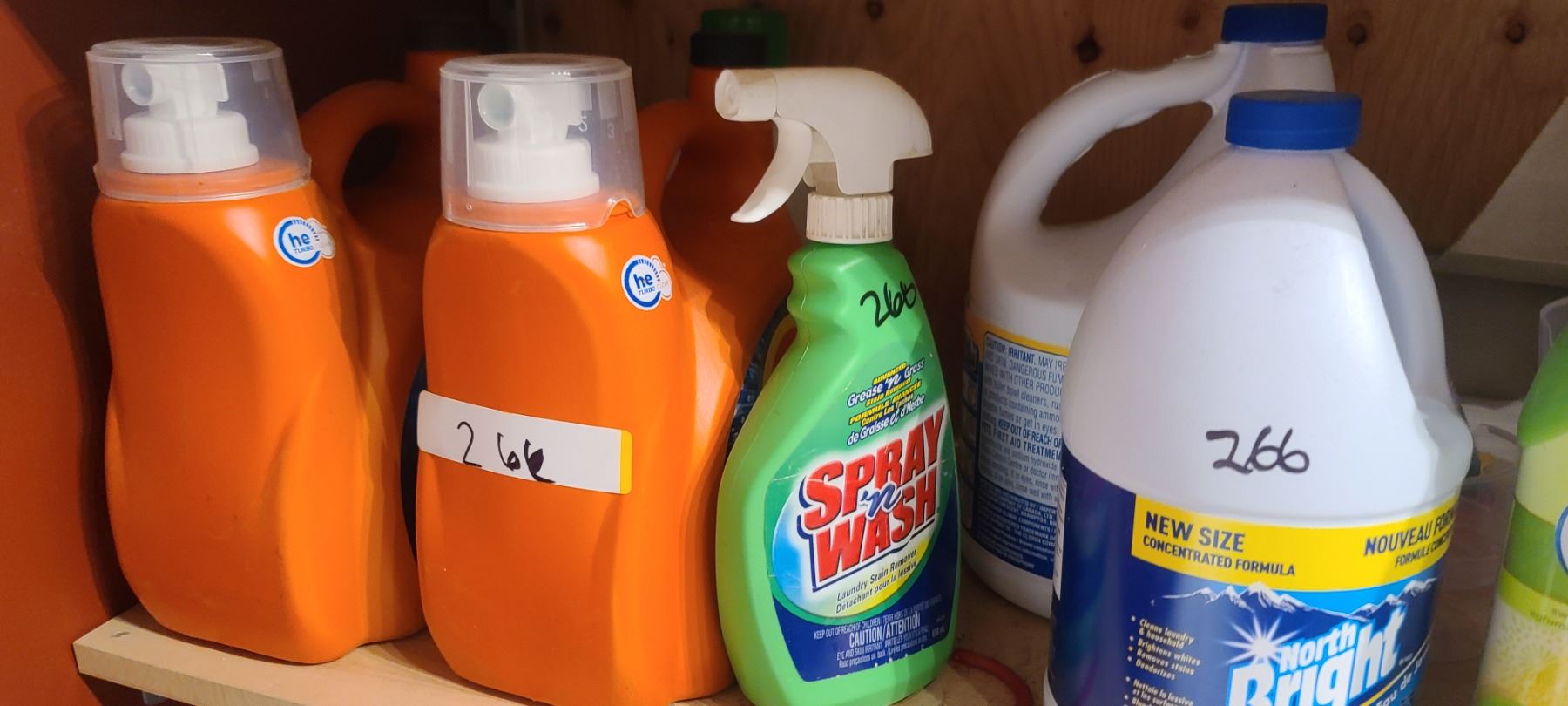 TWO 4LTR BOTTLES OF TIDE, BLEACH, BOUNCE AND DRYER SHEETS