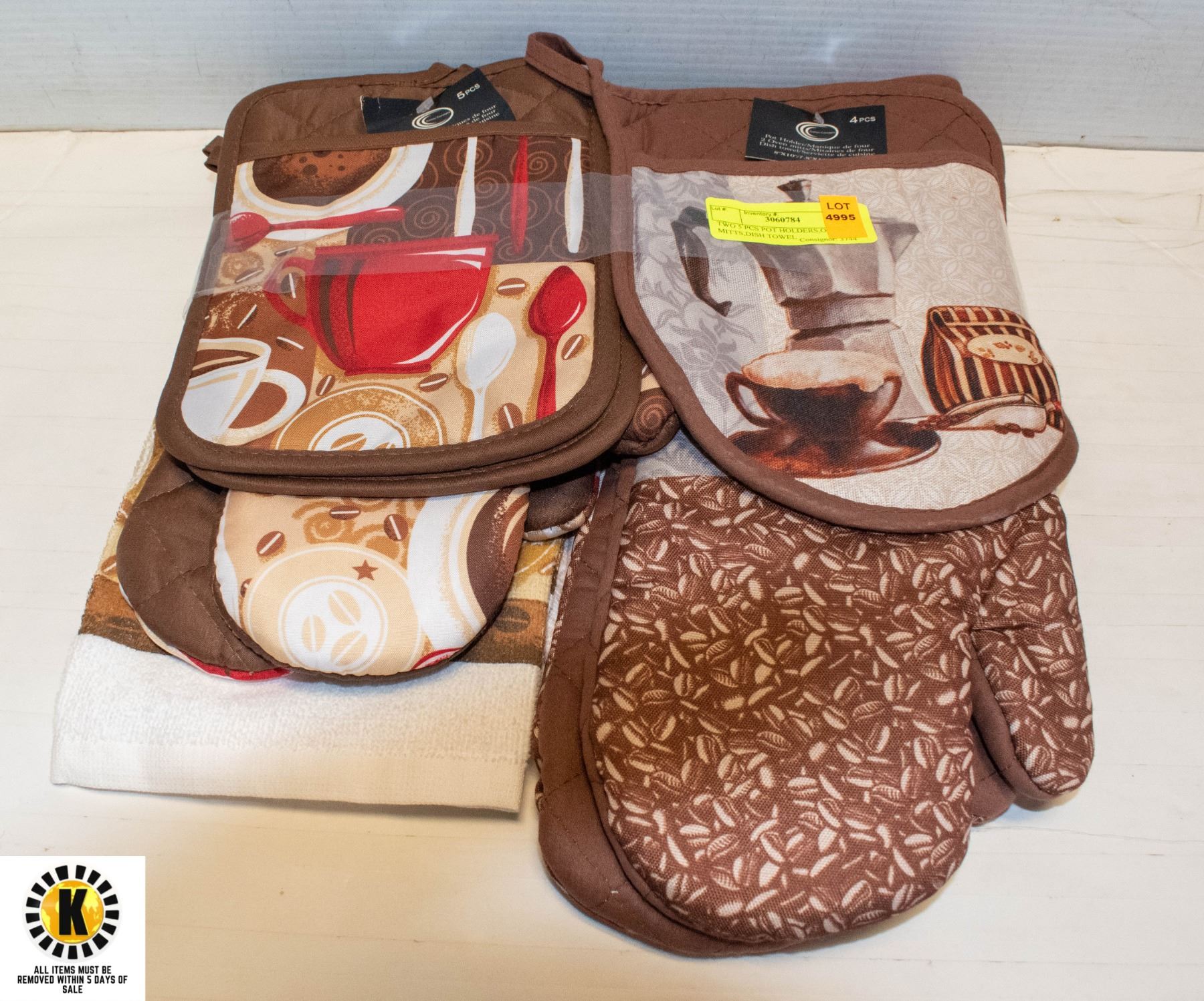 TWO 5 PCS POT HOLDERS,OVEN MITTS,DISH TOWEL
