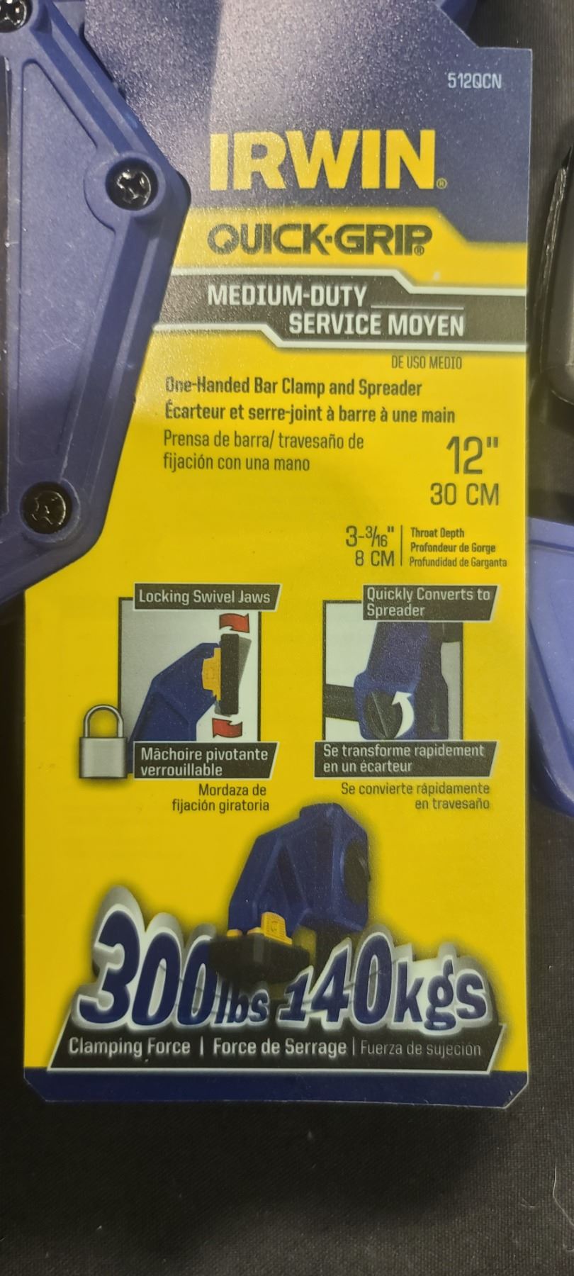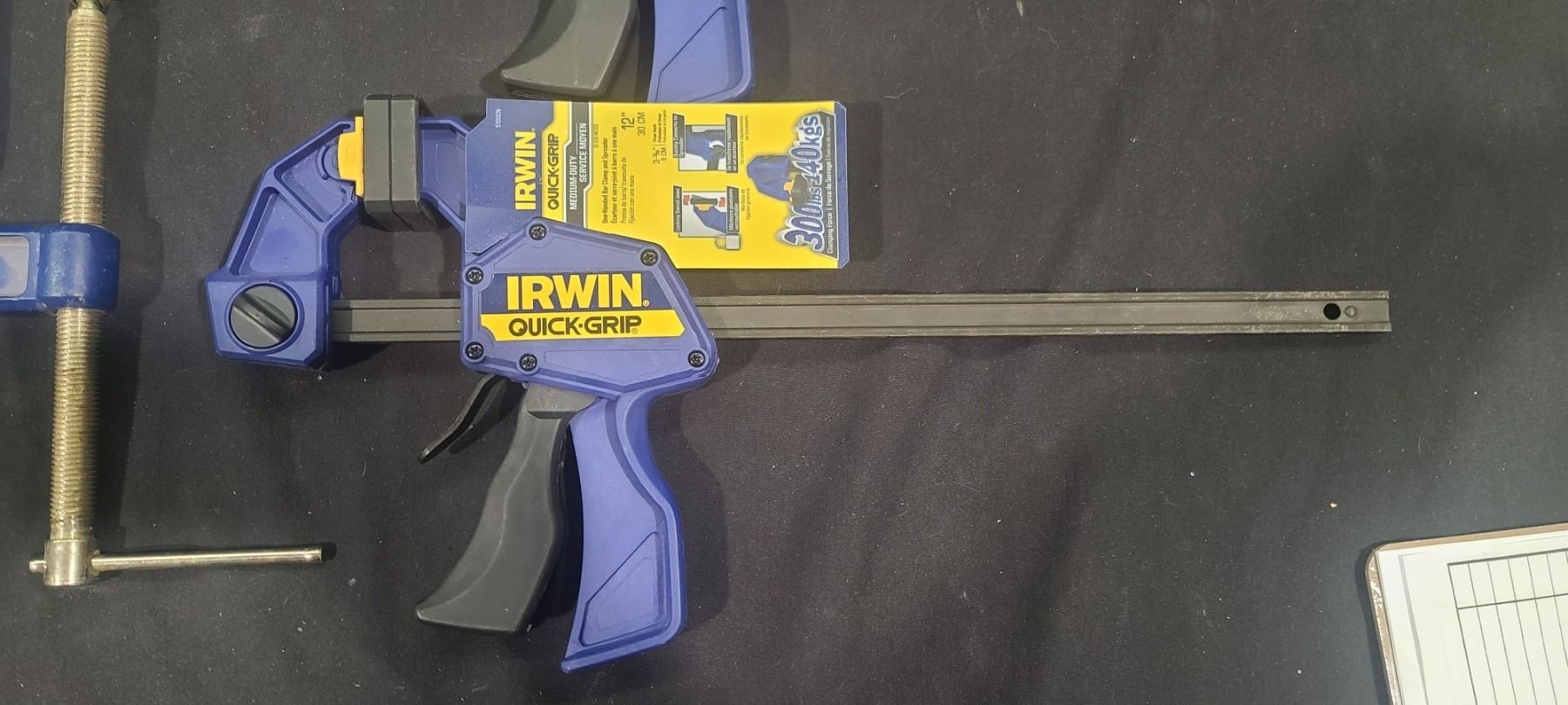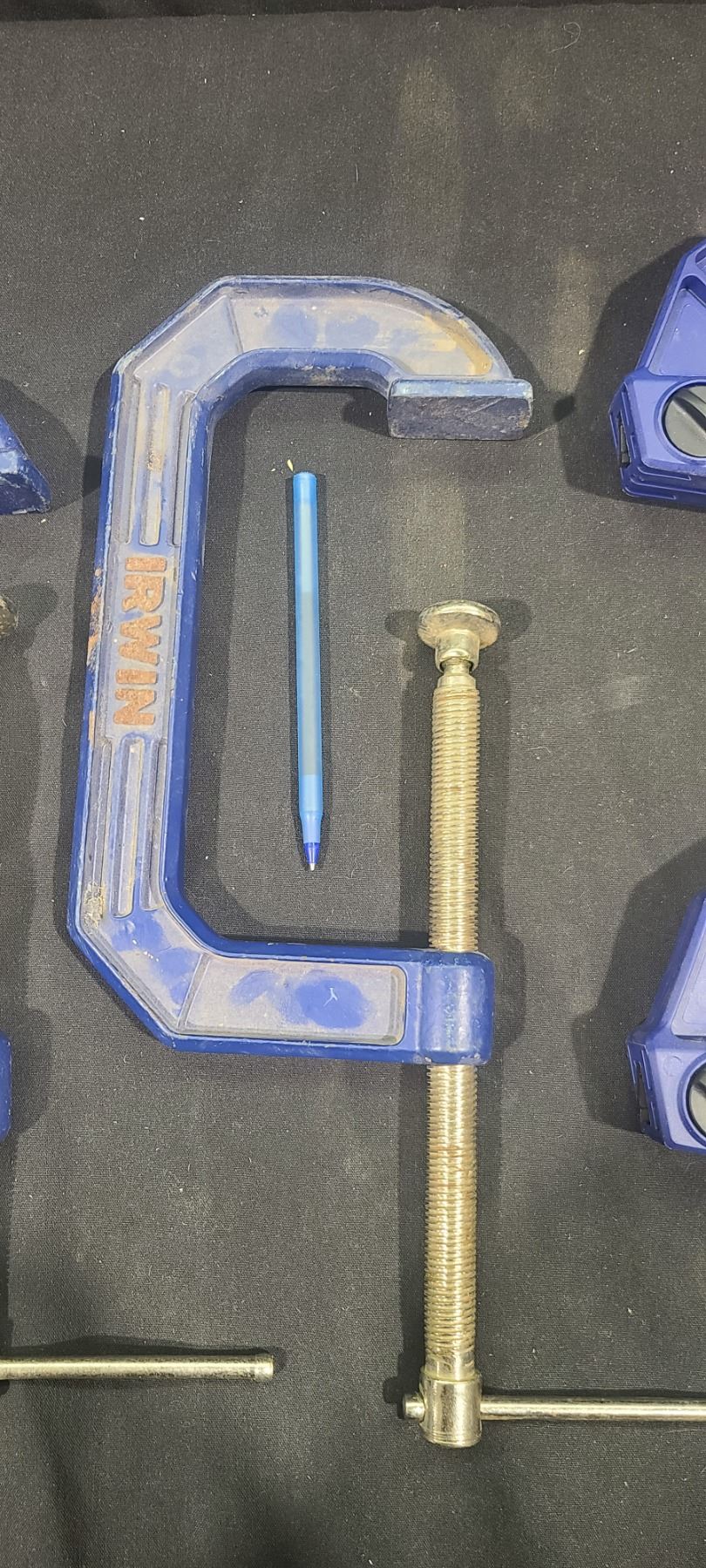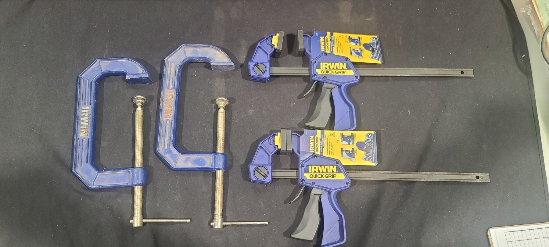 TWO 6" IRWIN C CLAMPS AND TWO IRWIN 12" QUICK GRIPS