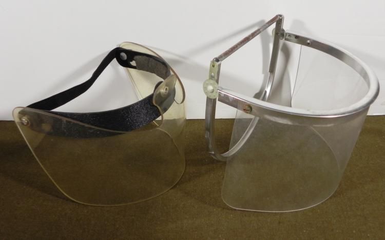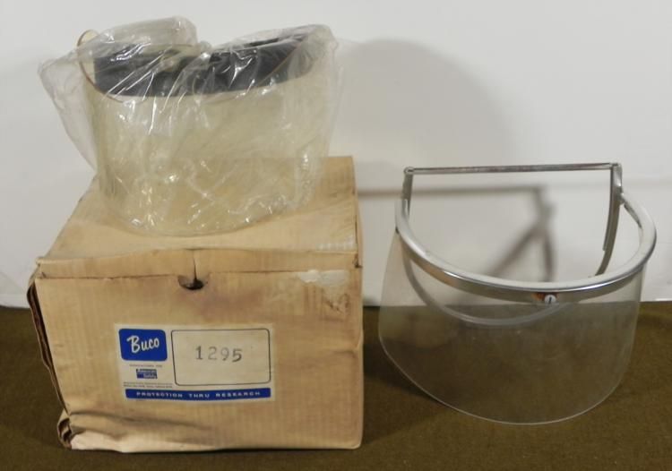 TWO 60'S POLICE MASKS FROM CHICAGO POLICE DEPT-ISSUED FOR CHICAGO RIOTS IN ORIG BOX * 2 METAL & PLEXI-GLASS FACE MASKS ISSUED TO CHICAGO POLICE--TO BE WORN WITH RIOT HELMETS DURING Q960'S CHICAGO RIOTS-1 VG COND--OTHER SOME FLAKING TO FOAM SWEAT BAND--IN ORIGINAL ISSUE BOX--MAKER:BUCO *