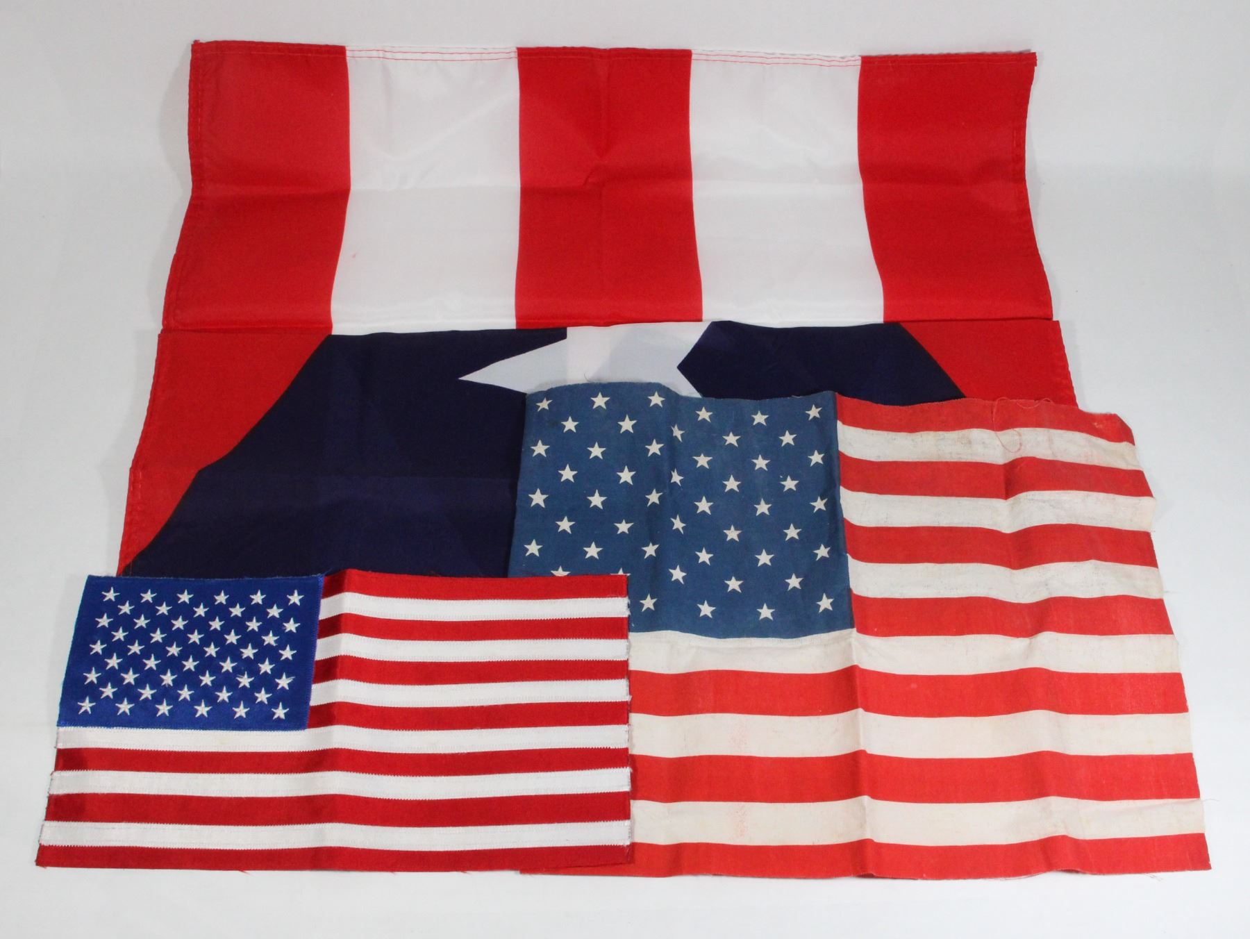 MODERN PUERTO RICO FLAG 36X22, USA 6.5 X 12"  JACKET PATCH FLAG, AND 1960'S UNITED STATES FLAG  15 X 11.5 INCHES