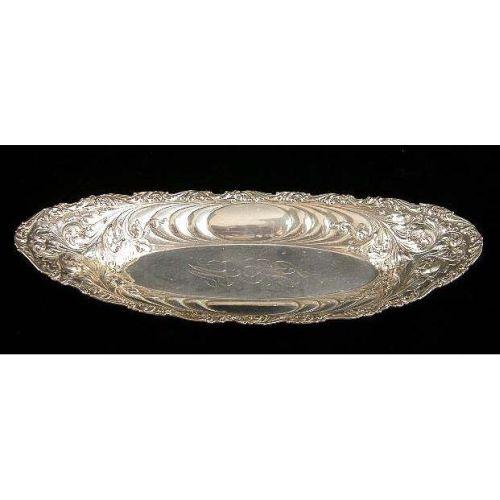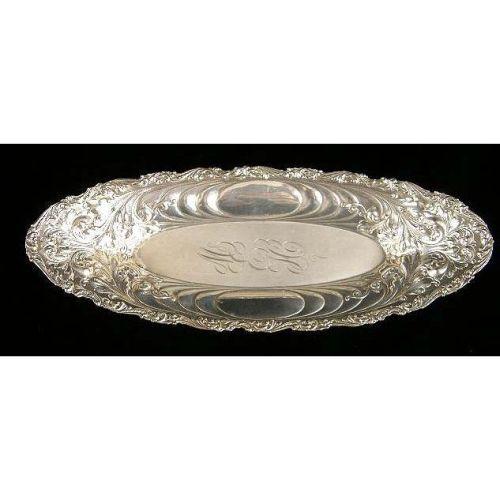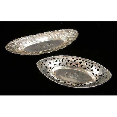 TWO AMERICAN STERLING SILVER OVAL PIN TRAYS<BR><BR>Both with centered monograma, longer 8-1/2"long, weight apx. 4 T.O.
