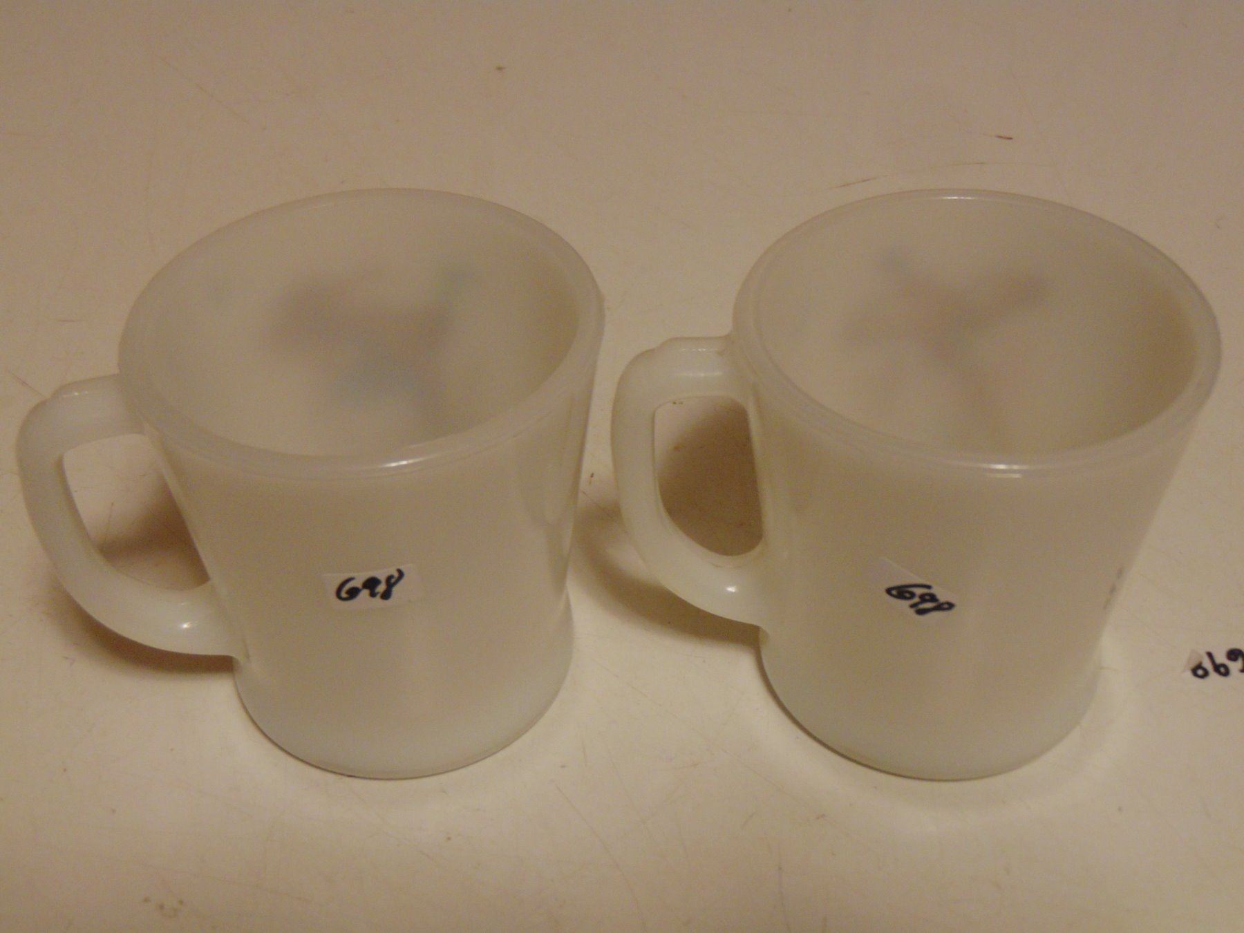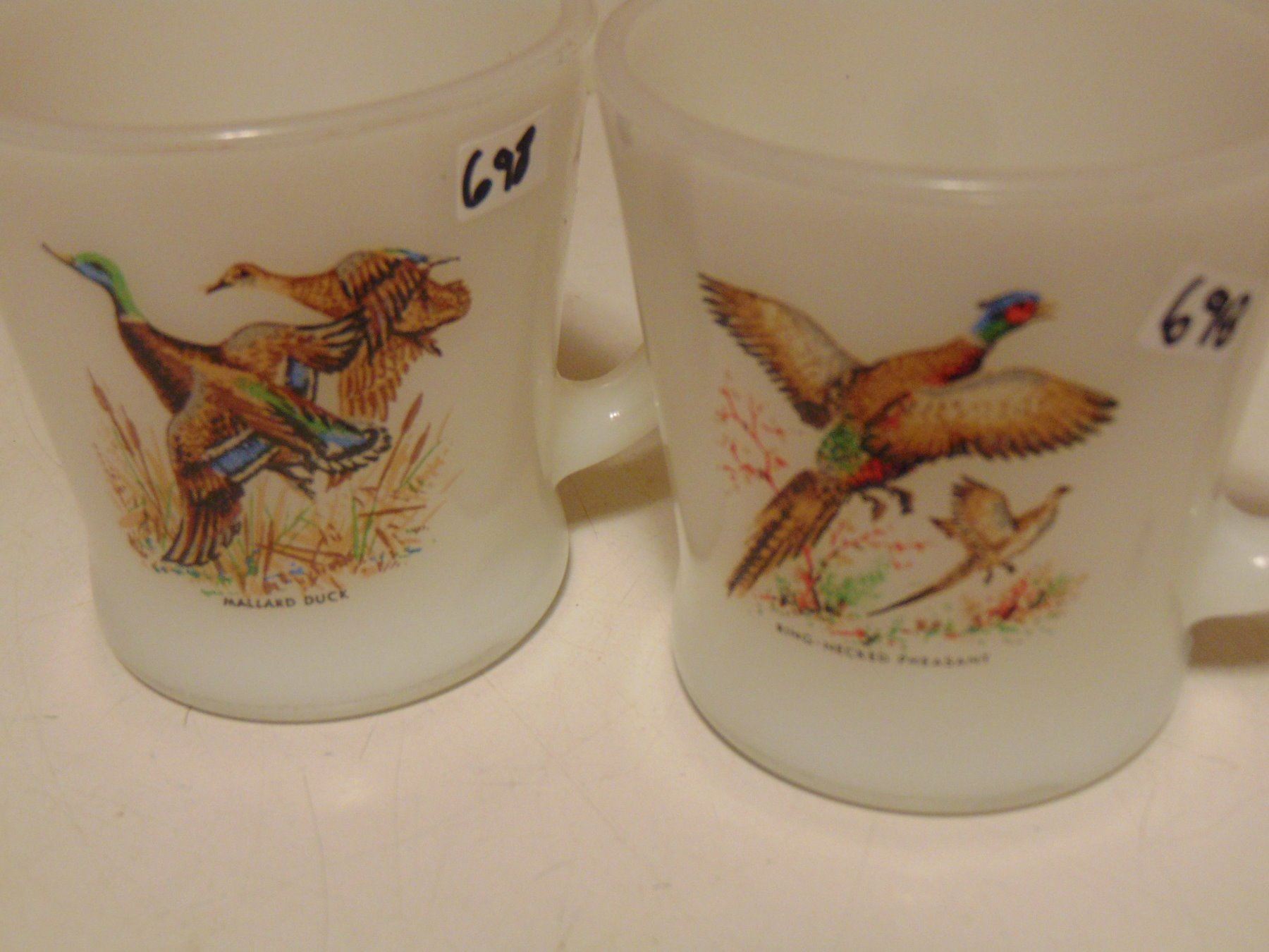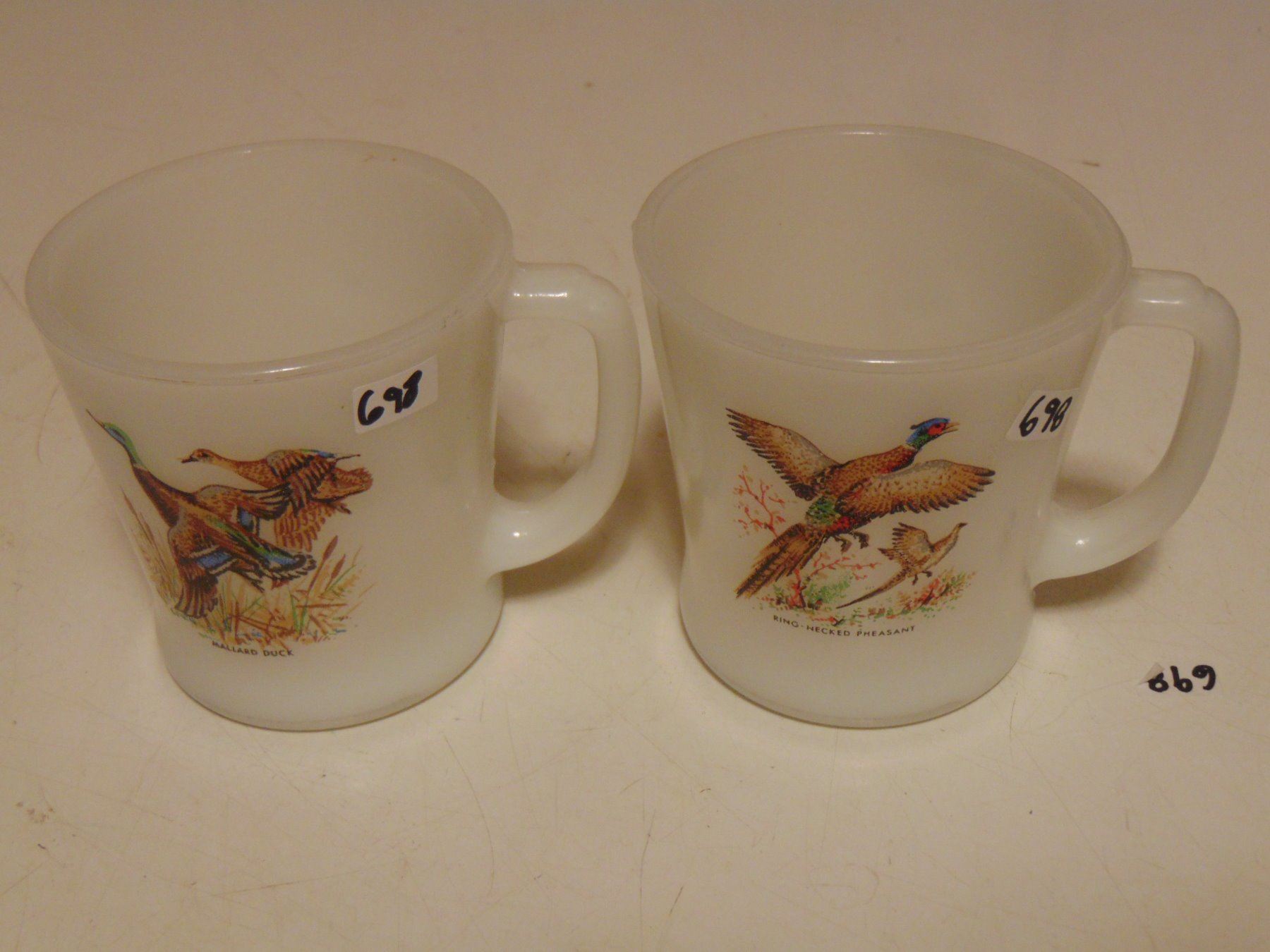 TWO ANCHOR HOCKING FIRE KING USA D HANDLE MUGS WITH BIRDS