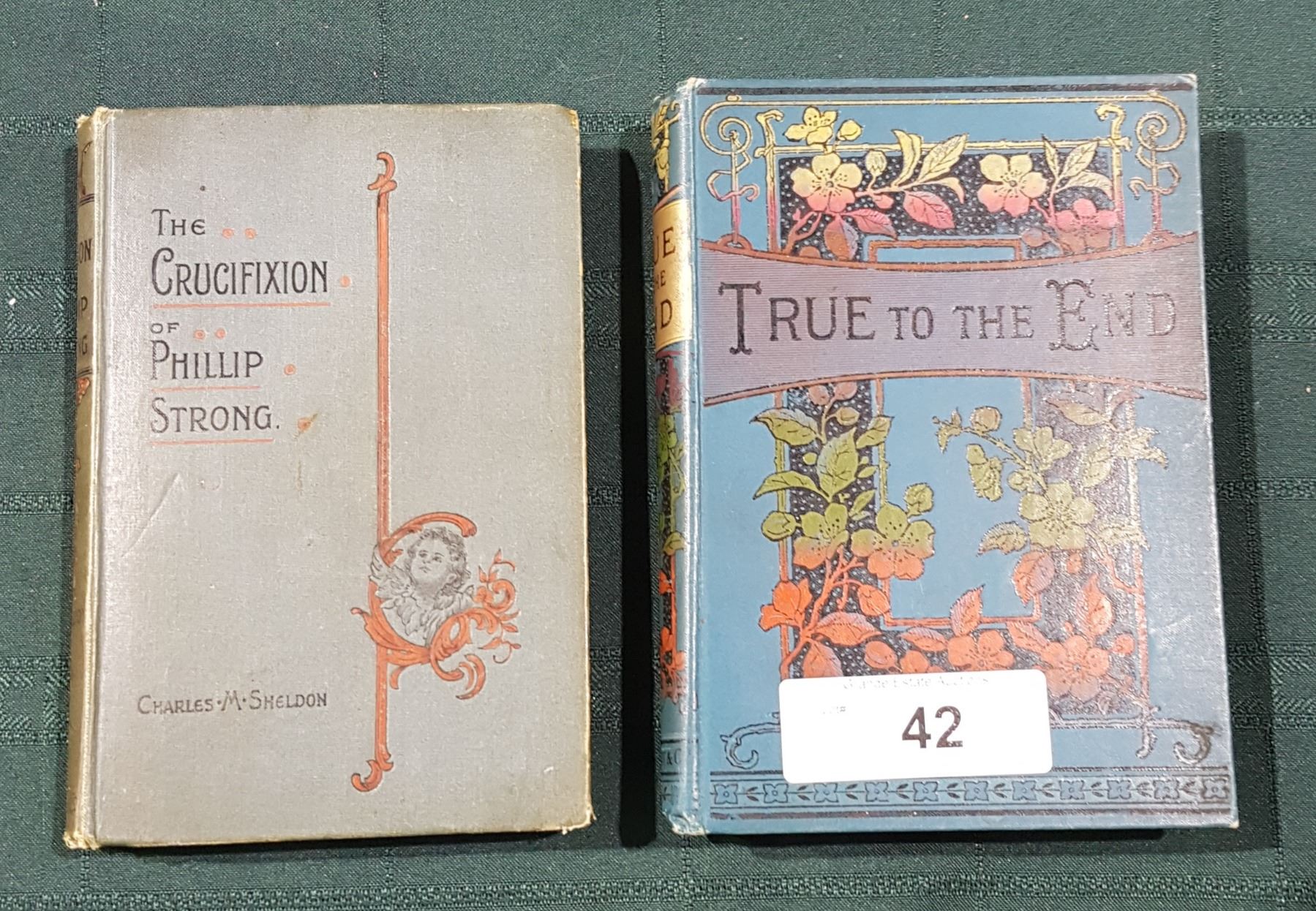 "TRUE TO THE END" NOVEL BY REV. DR. EAERSHEIM, DEDICATED 1847, HAS MINOR WEAR & "THE CRUCIFIXION OF PHILLIP STRONG" BY C.M. SHELDON