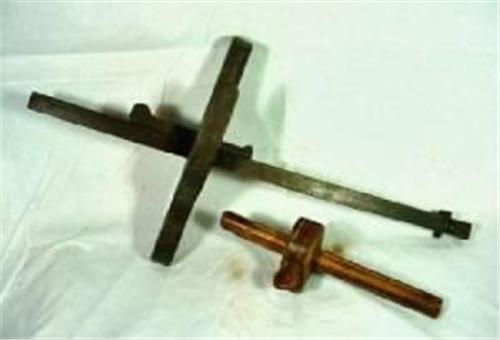 TWO ANTIQUE CARPENTERS SCRIBE 19"X10" AND 9"X2.5".