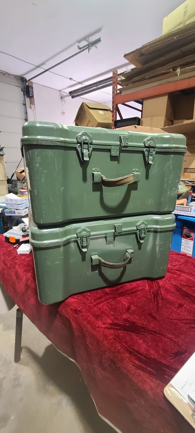 TWO ARMY CASES ONE HAS ONE BROKEN CLASP - NO HOLES OR CRACKS