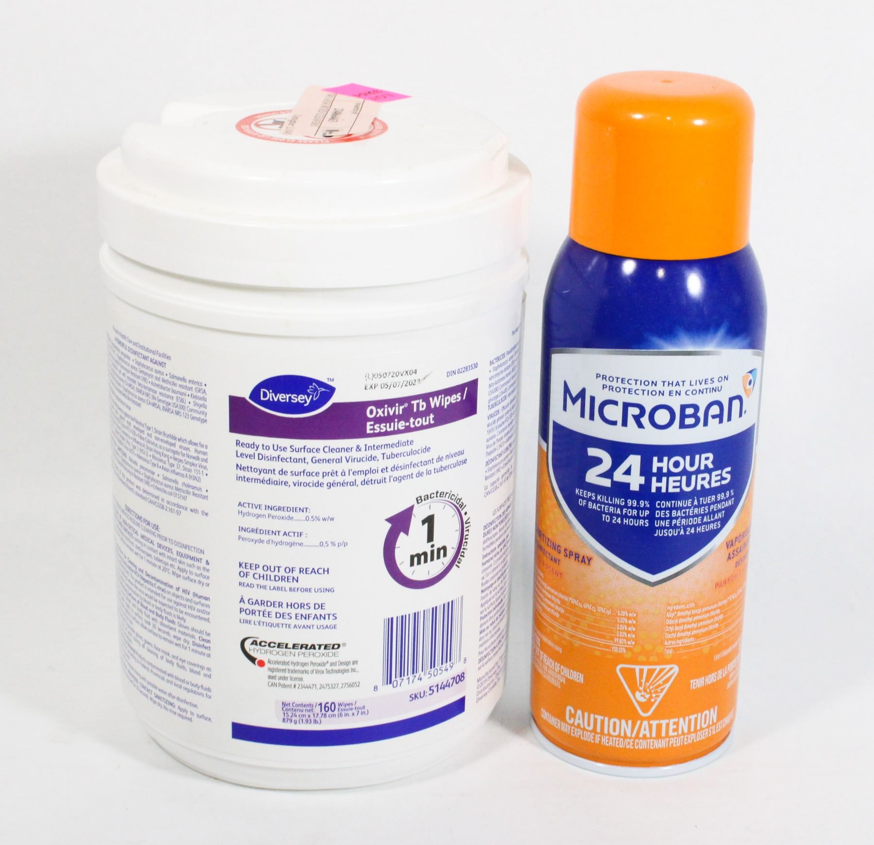 DIVERSEY TB WIPES, AND MICROBAN. MICROBAN FEELS ABOUT 70% FULL AS A GUESS