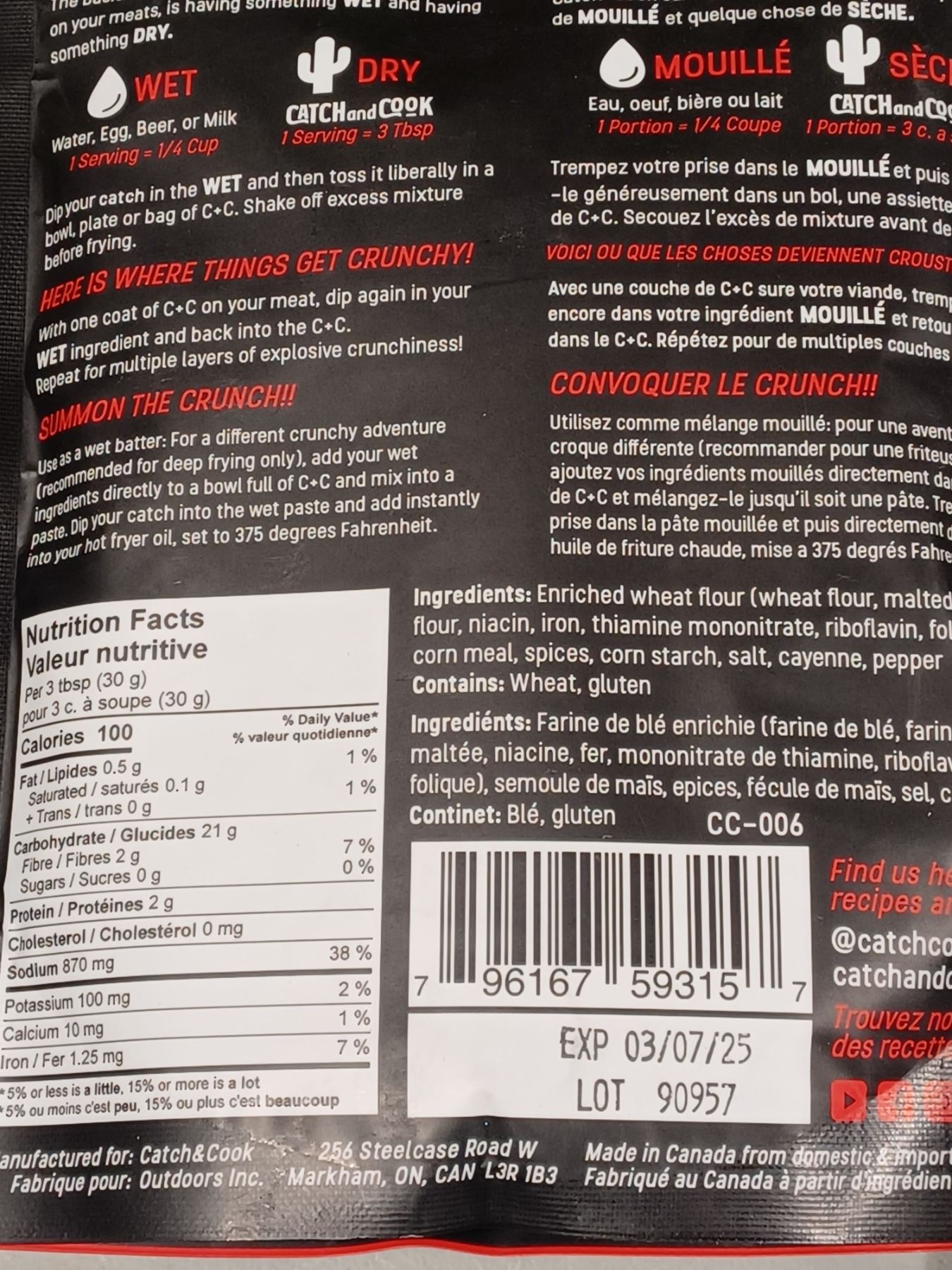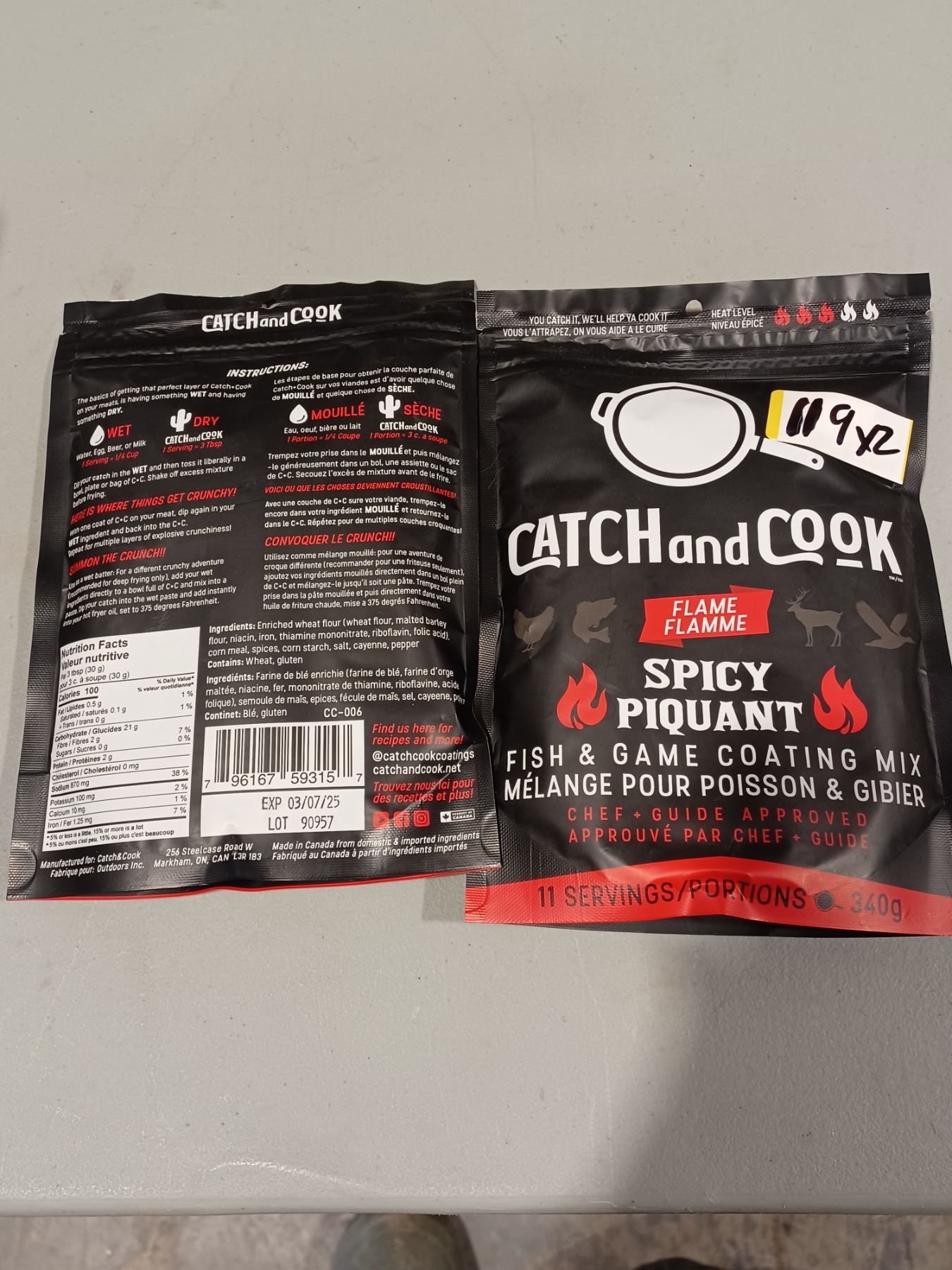 TWO BAGS OF SEALED CATCH AND COOK SPICY FISH AND GAME BATTER MIX 340GR QTY 2