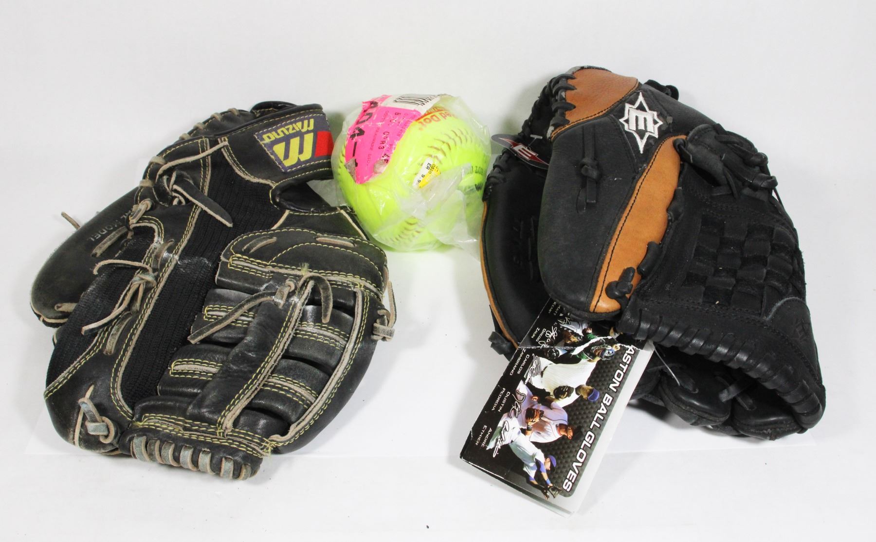 ONE GLOVE IS A NEW EASTON 13" FOR CATCHING WITH LEFT HAND