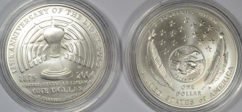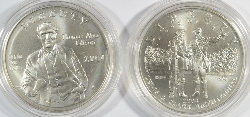 TWO BETTER 2004 UNCIRCULATED COMMEMORATIVE SILVER DOLLARS, EDISON, LEWIS/CLARK