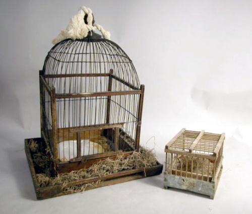One with a dome top, the second in the shape of a box. Wear. Tallest 19"h.