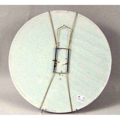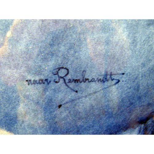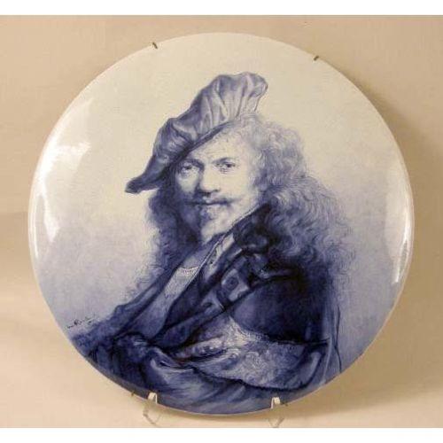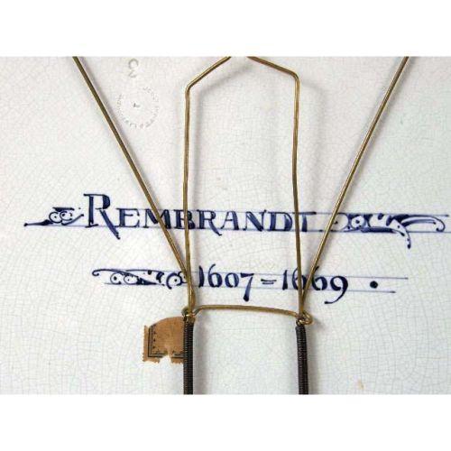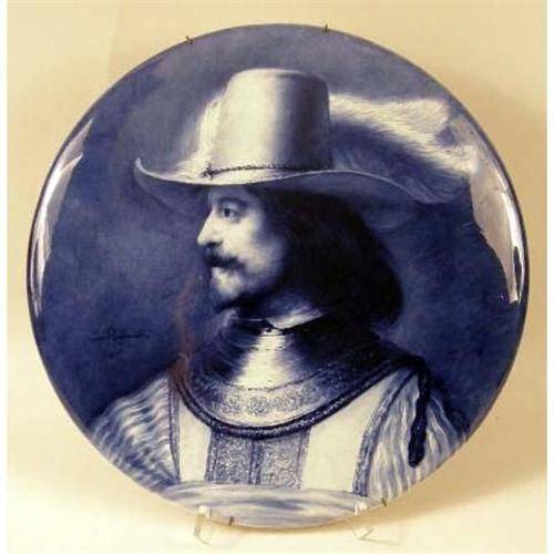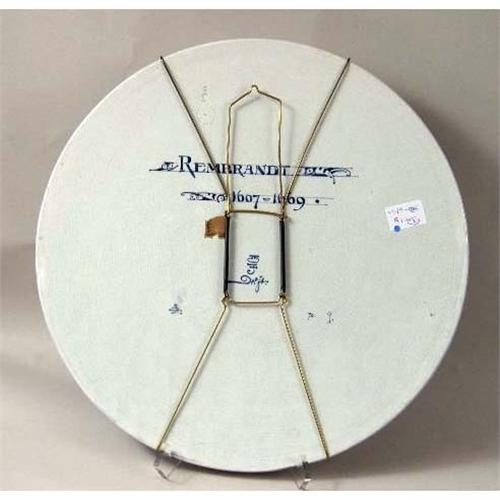 TWO BLUE AND WHITE DELFT CIRCULAR WALL PLAQUES<BR><BR>One depicting a portrait of "Rembrandt," the other a portrait of a gentleman in a feathered hat, both bear signature "Naar Rembrandt," and verso impressed "Joost Thooft and Labouchere," crazing, 17-14"dia
