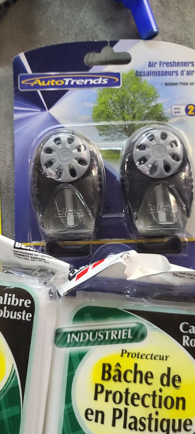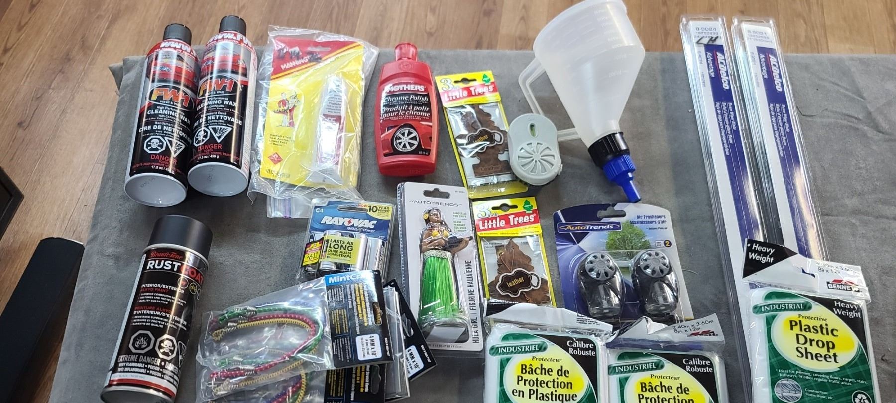 TWO BOTTLES OF FW1 WASH AND WAX/CHROME CLEANER, AIR FRESHINERS