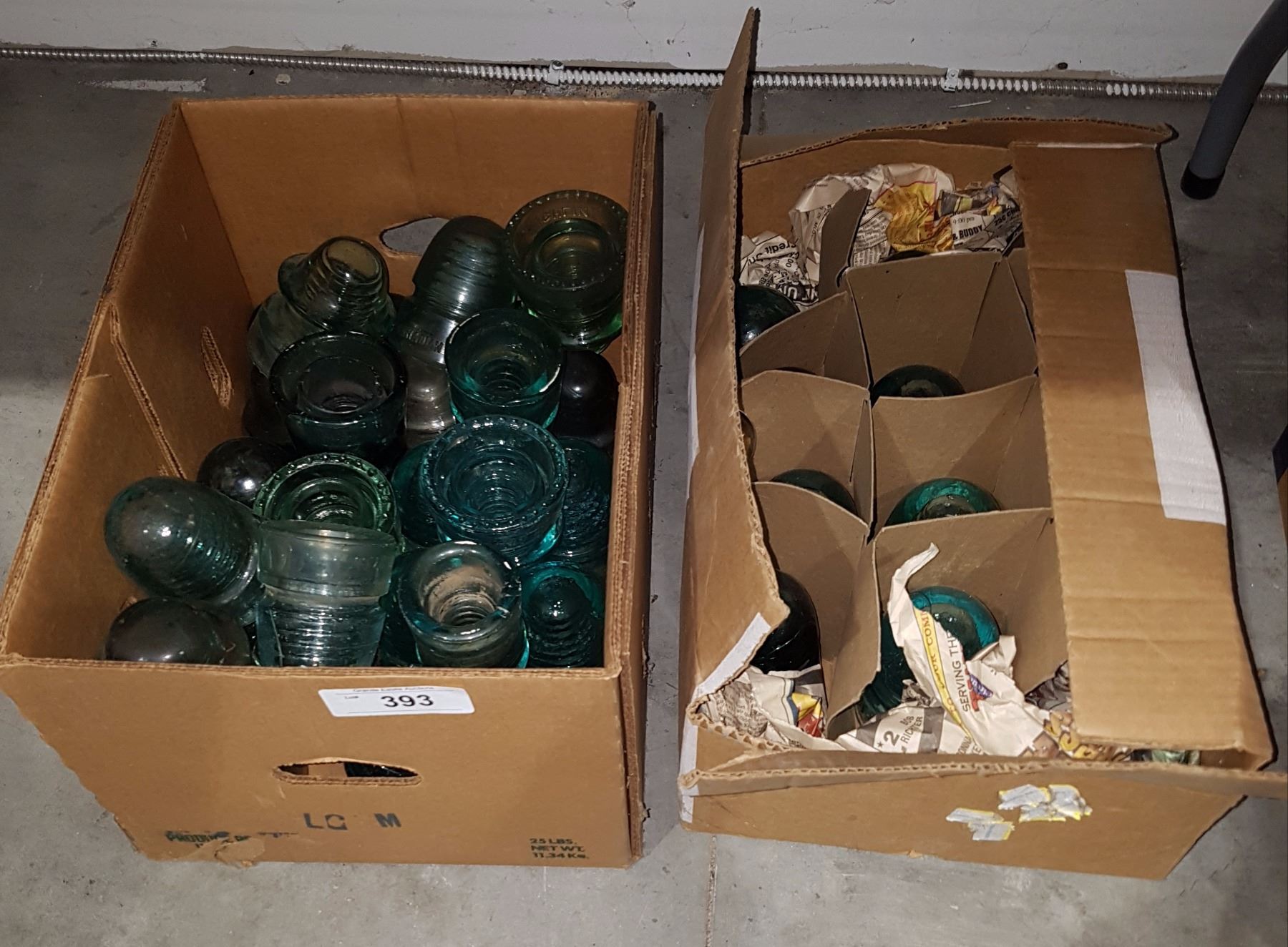 TWO BOXES MISC COLOURED GLASS INSULATORS