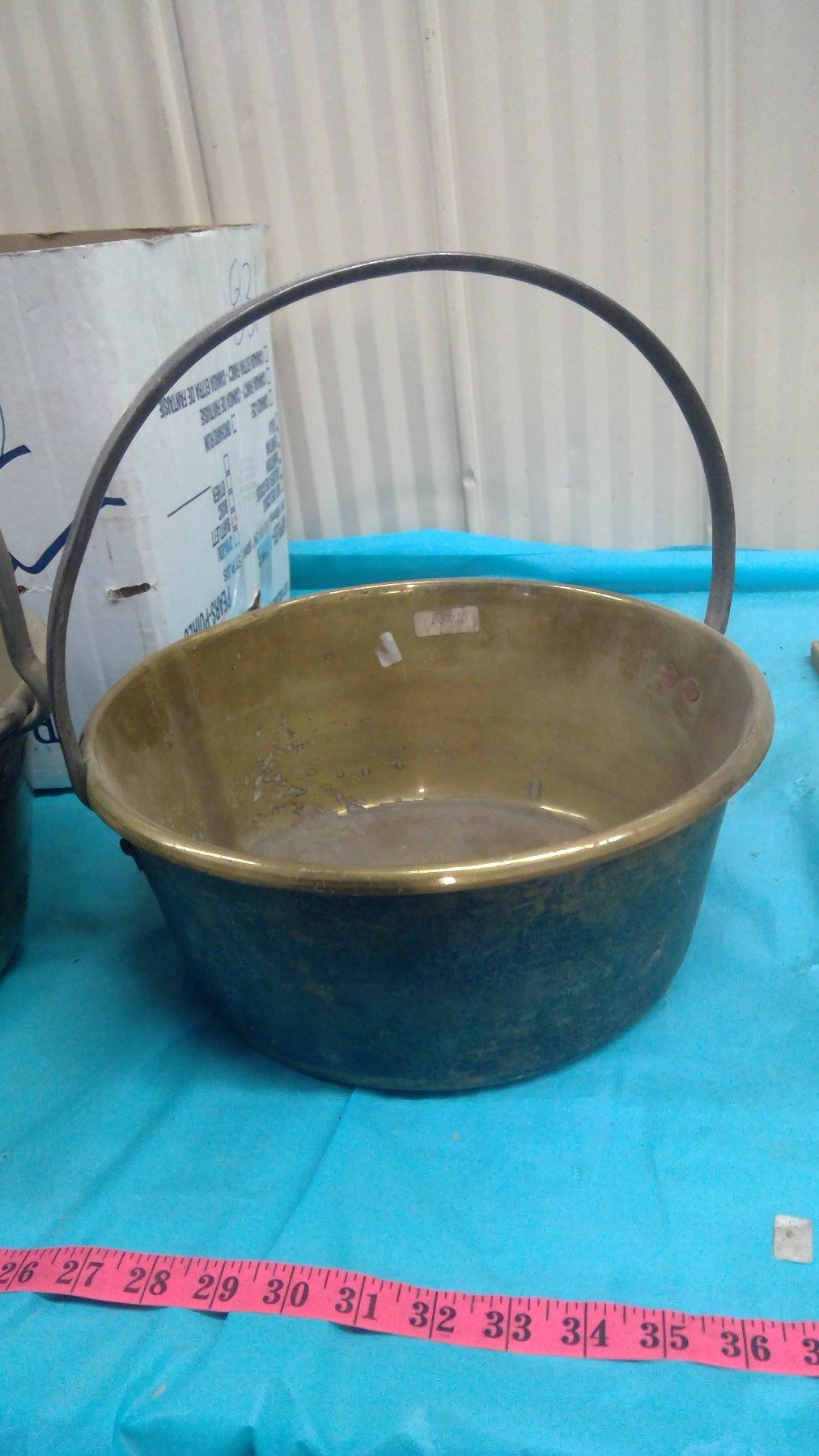 TWO BRASS POTS - 13" ACROSS & 12" ACROSS