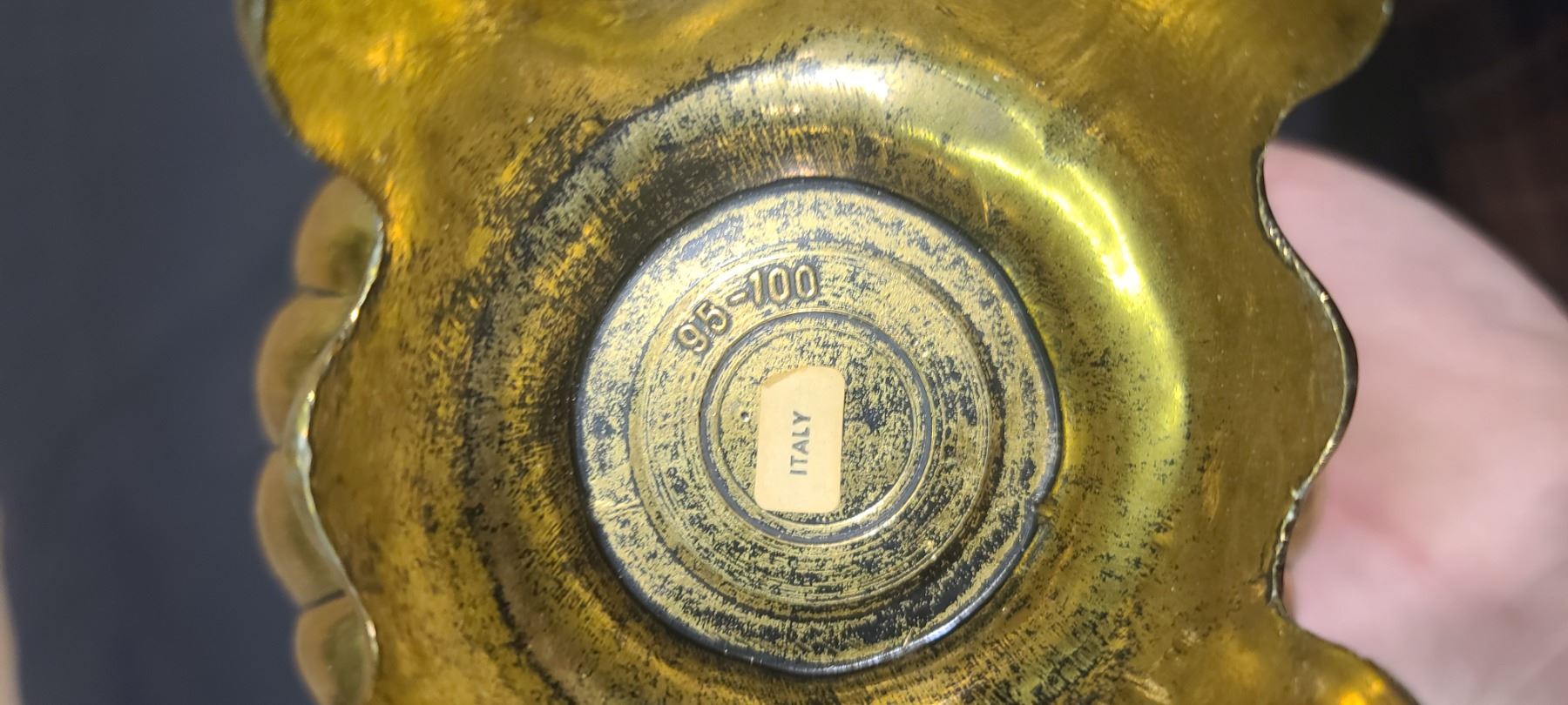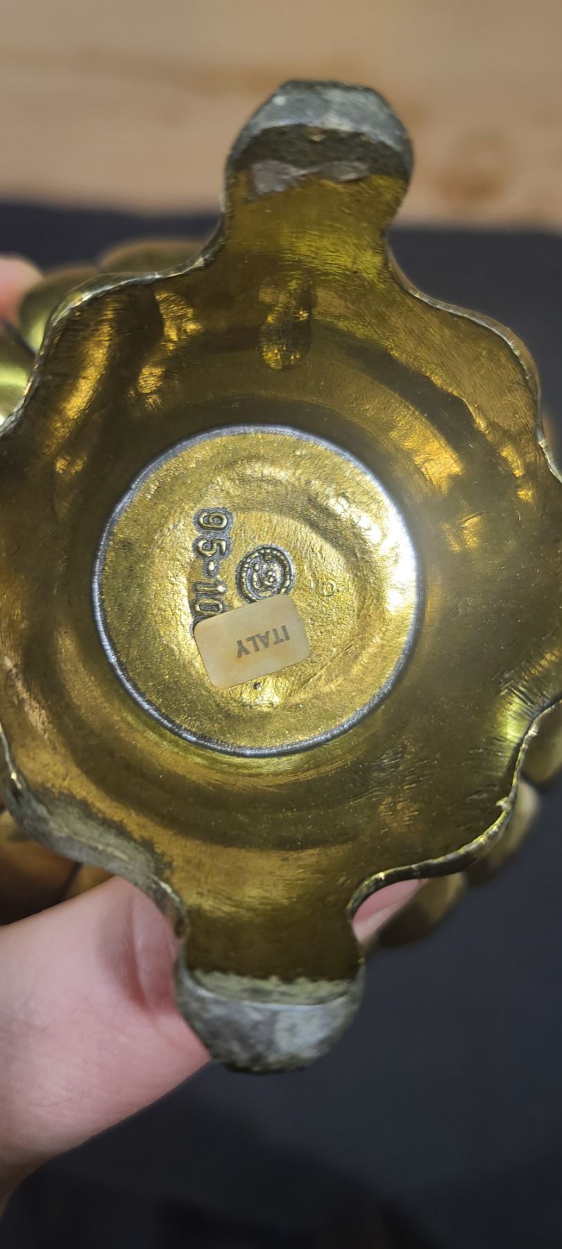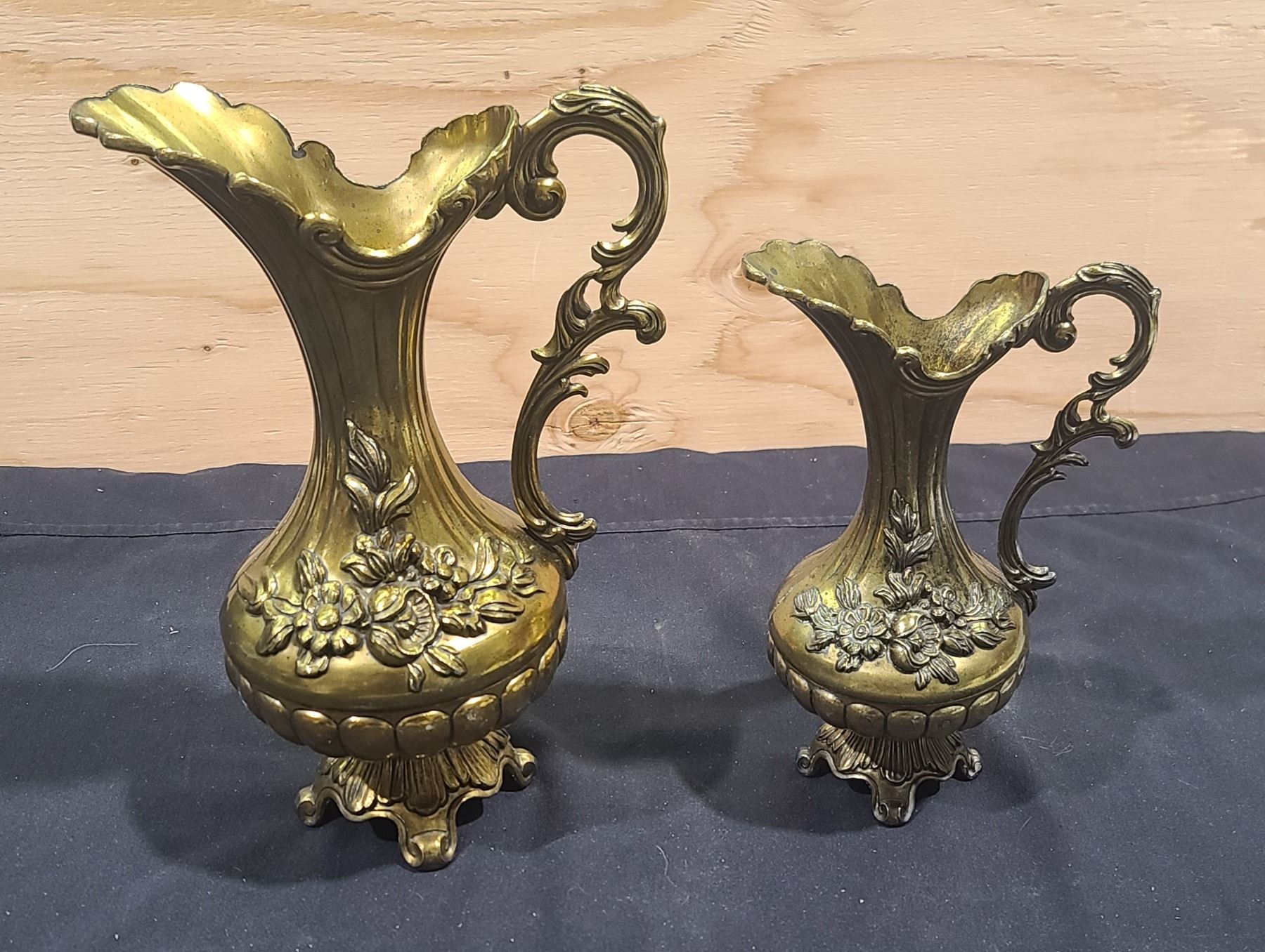 TWO BRASS VASES/CRAVAS MADE IN ITALY. 12" AND 10" TALL