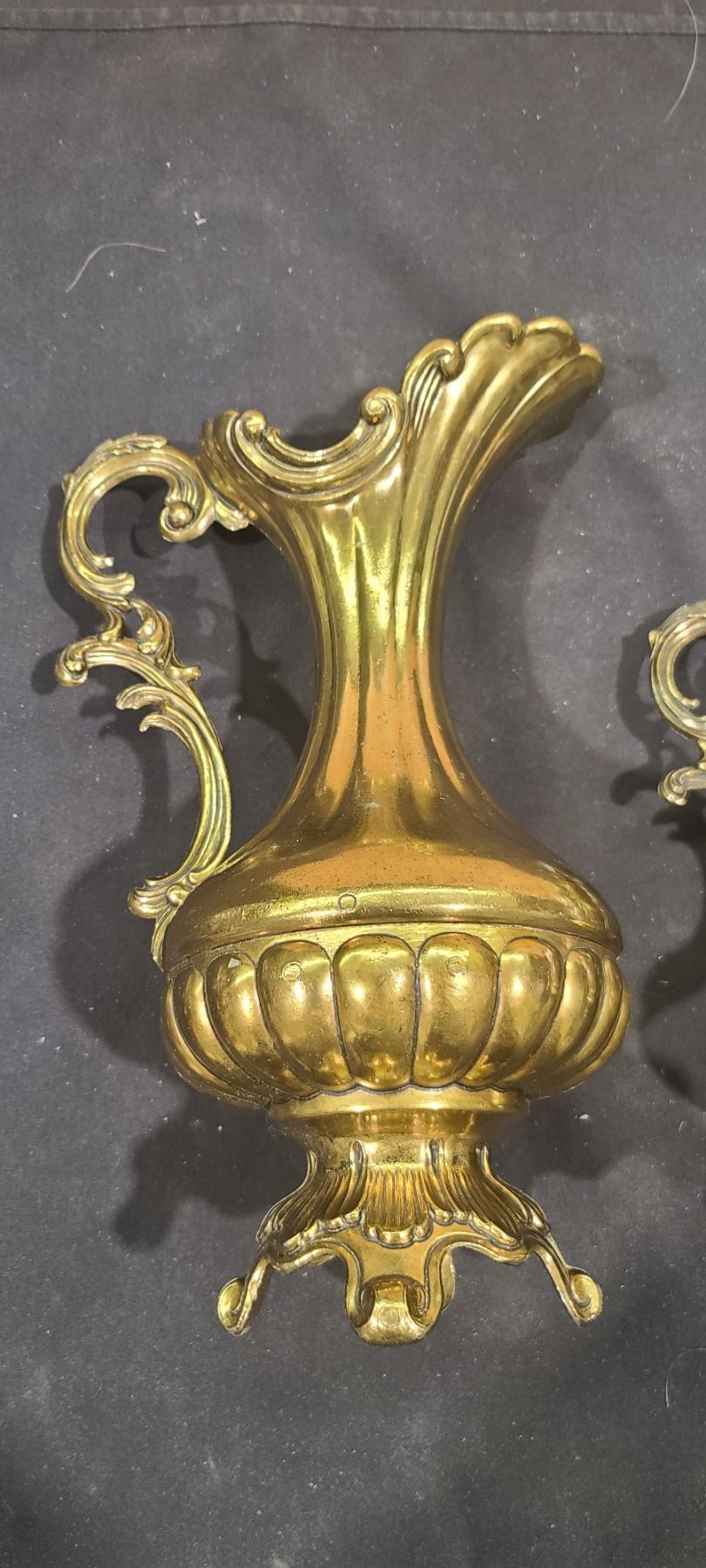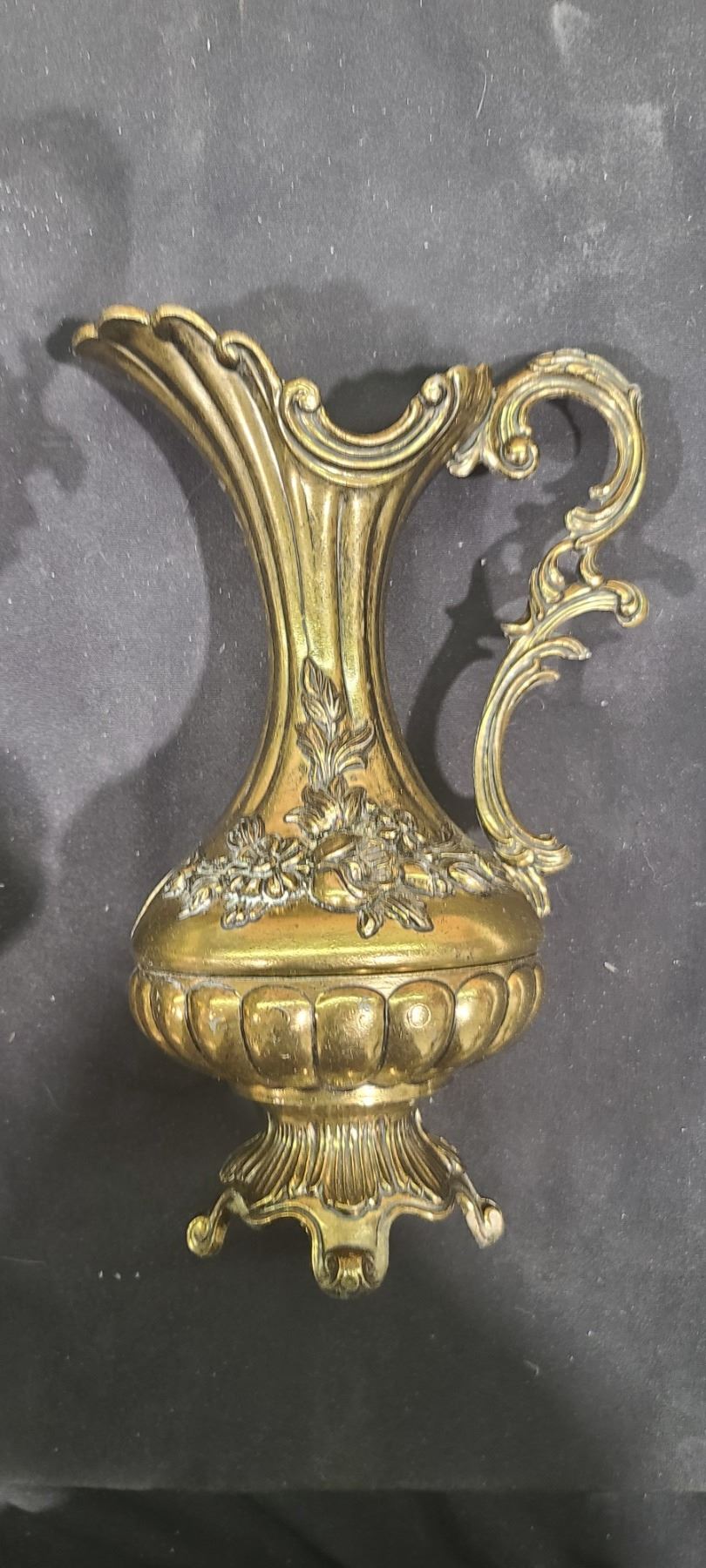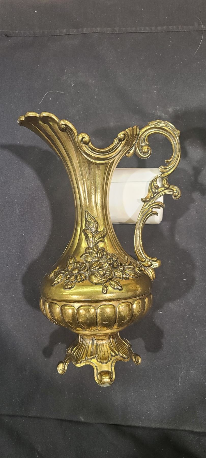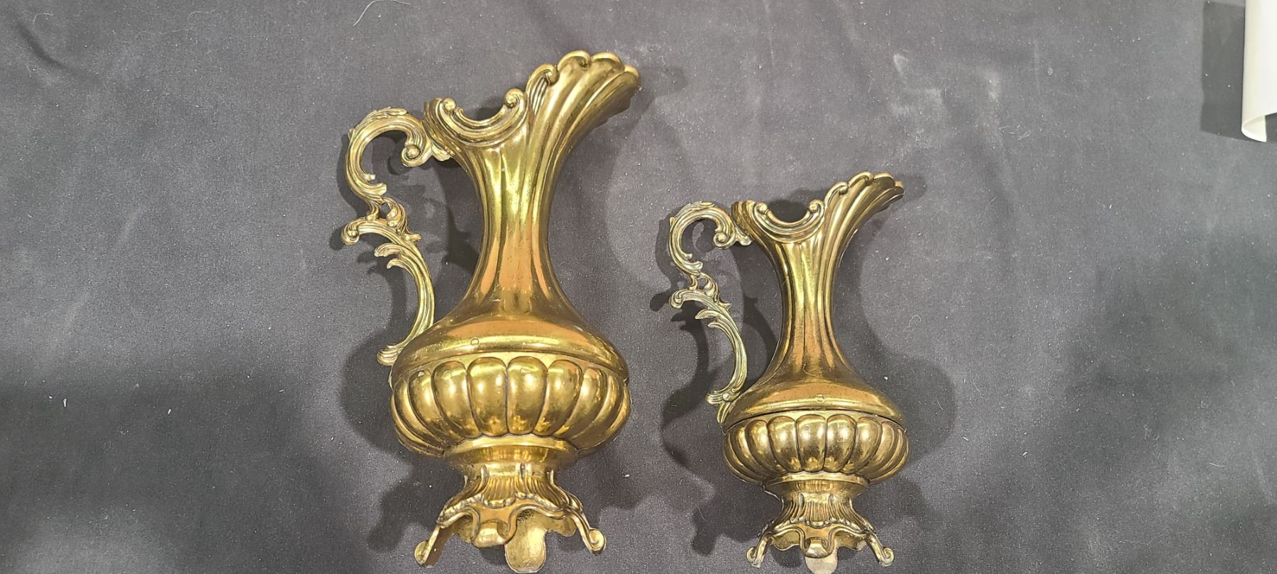TWO BRASS VASES/CRAVAS MADE IN ITALY. 12" AND 10" TALL
