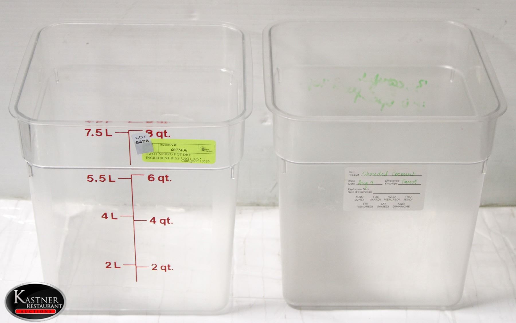 TWO CAMBRO 8 QT DRY INGREDIENT BINS * NO LIDS *