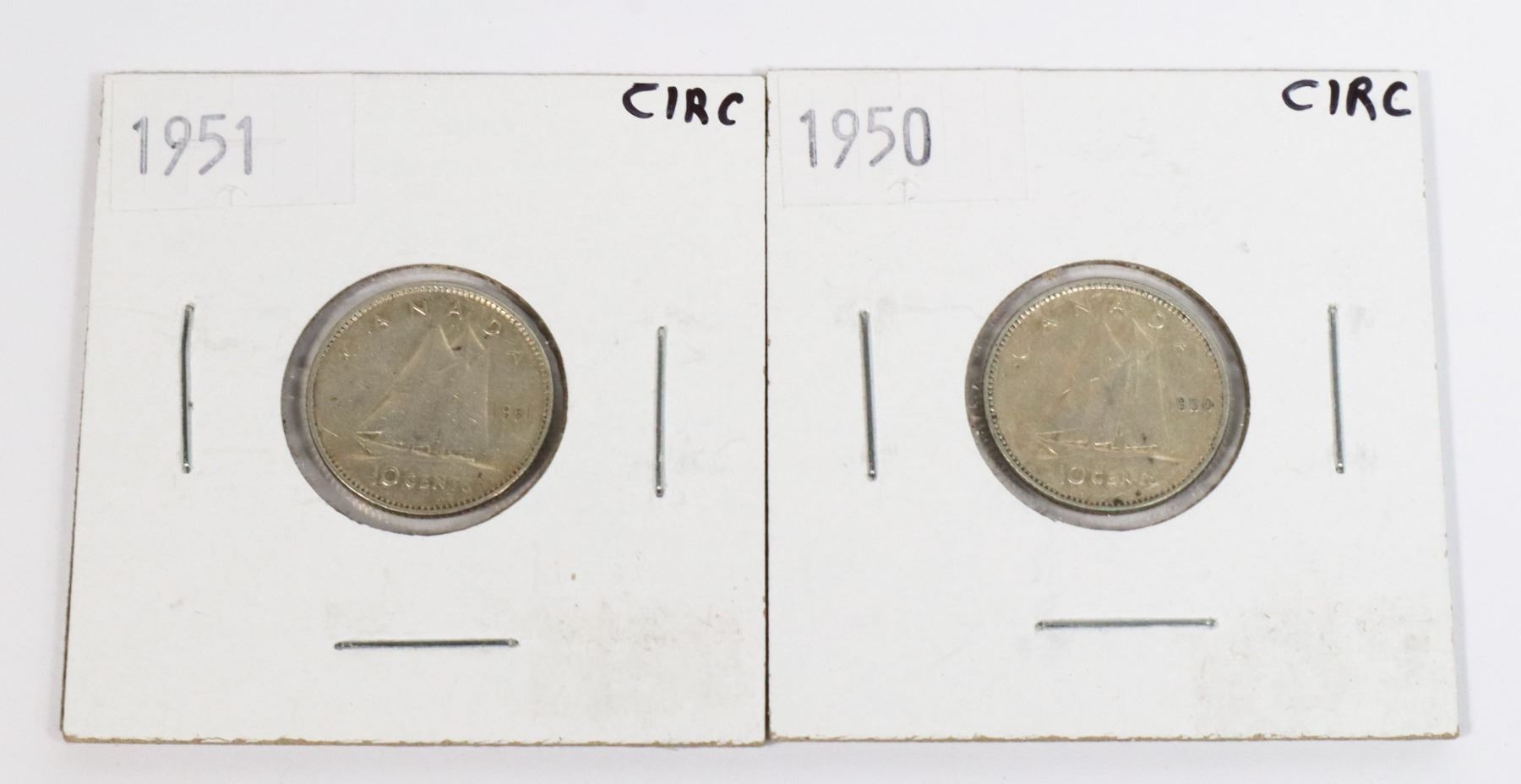 TWO CANADA 10 CENT 1950, 1951 80% SILVER