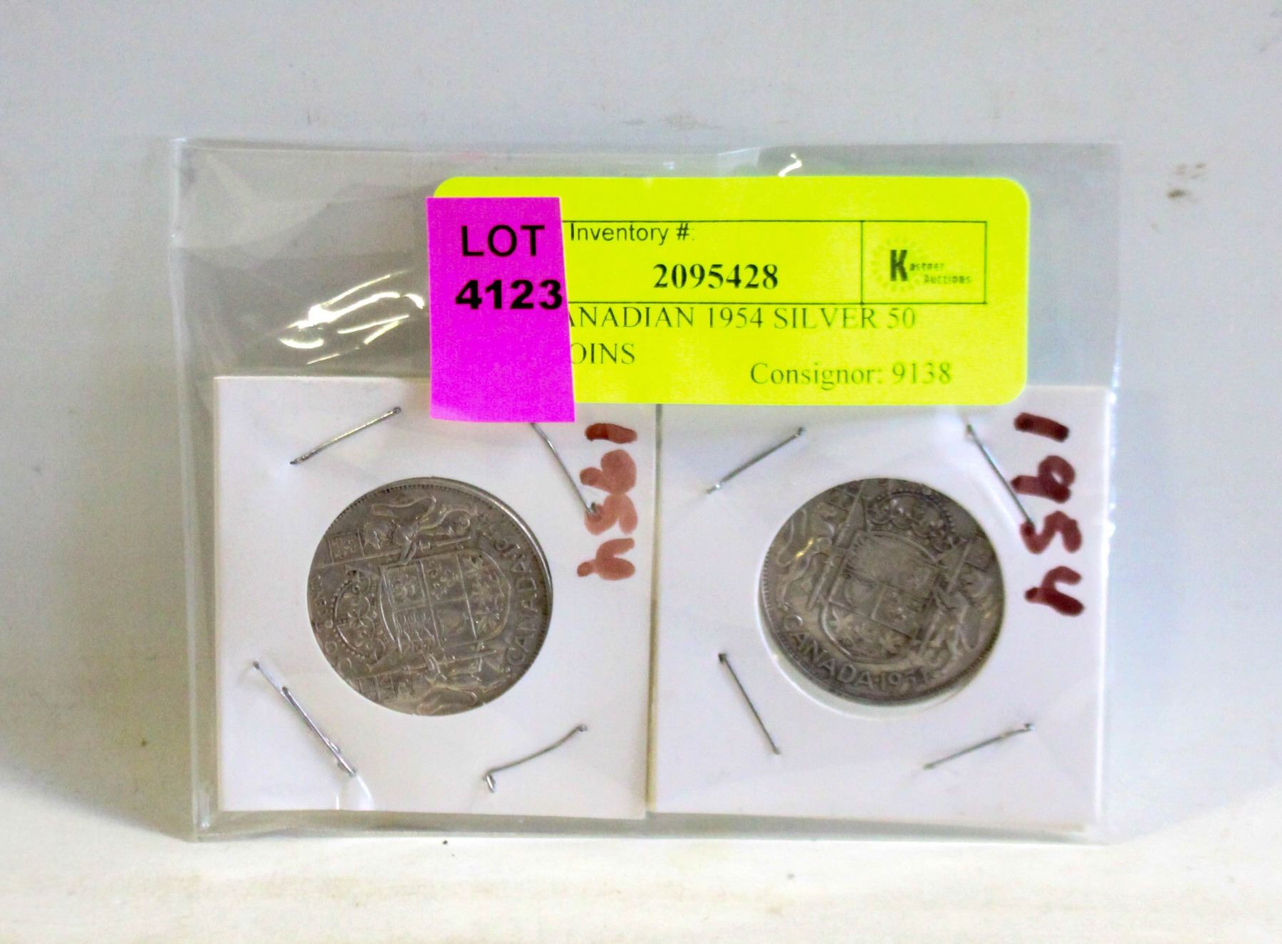 TWO CANADIAN 1954 SILVER 50 CENT COINS
